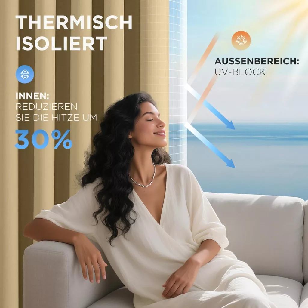 - 100% Fényálló Technológia: A függöny teljes sötétséget biztosít, tökéletes a fényre érzékeny emberek és a gyermekek számára