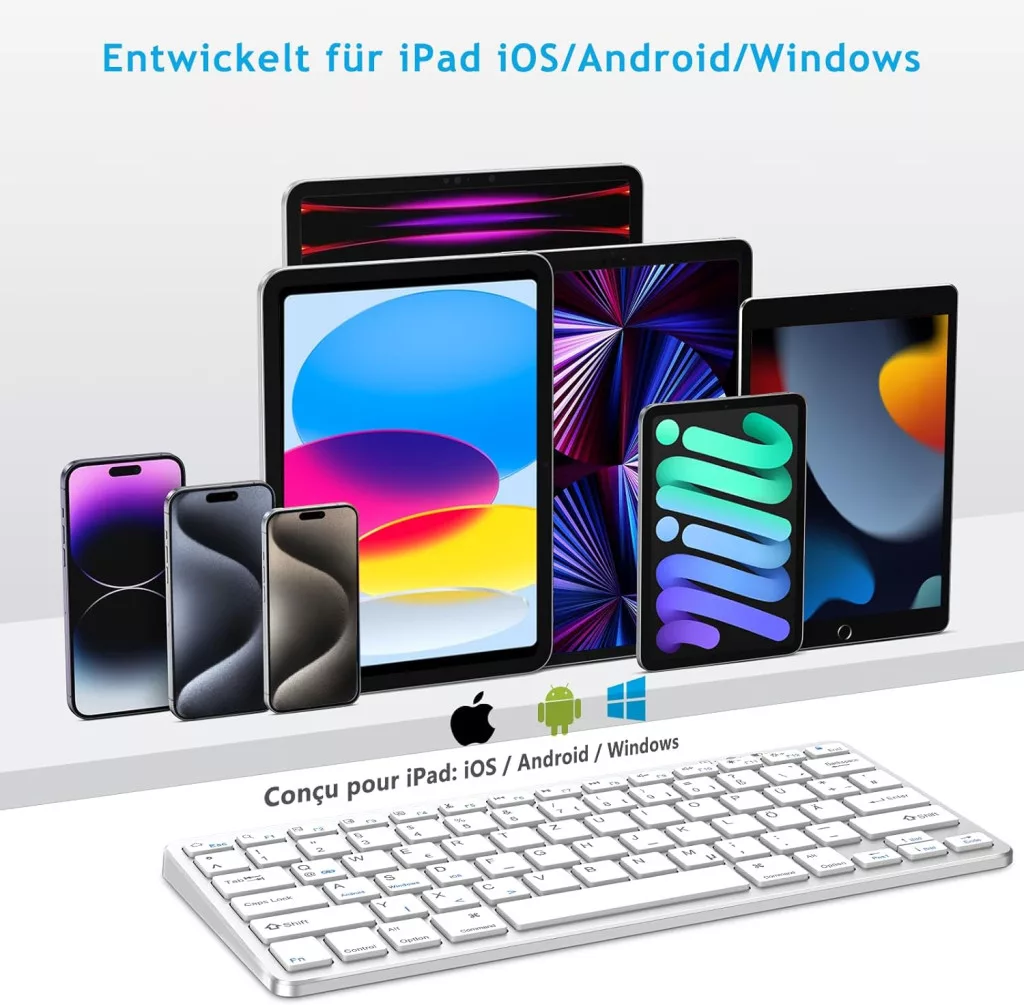 A KARFUN Bluetooth billentyűzet széleskörű kompatibilitást biztosít: