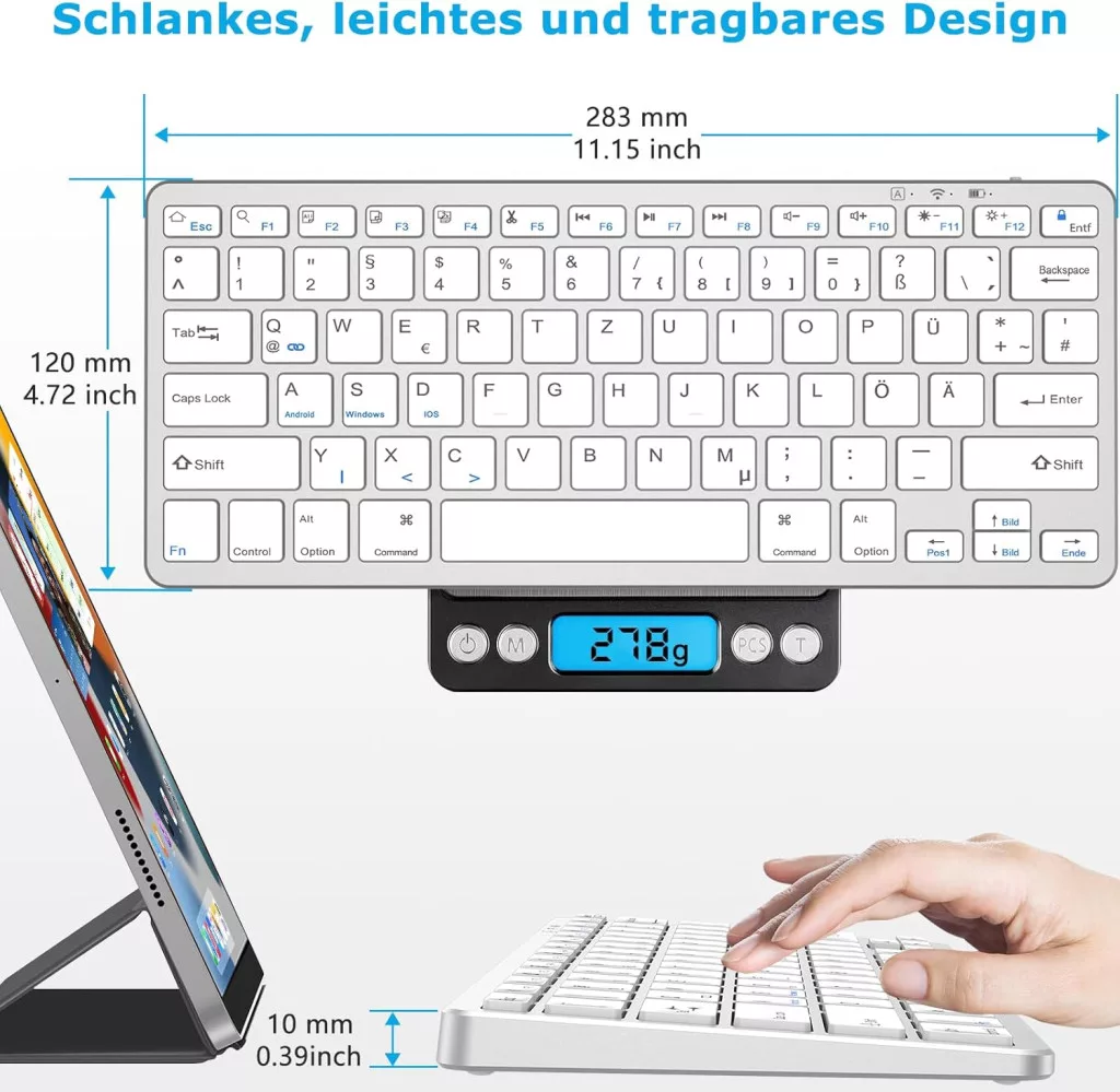A KARFUN Bluetooth billentyűzet egy modern, hordozható megoldás azok számára, akik mobil eszközökön szeretnének kényelmes gépelési élményt. Ez az ultra vékony, vezeték nélküli billentyűzet tökéletesen kompatibilis az iPad, iPhone, laptop és Android eszközökkel, így ideális választás a multitasking felhasználók számára. Az ergonomikus kialakítás és a minőségi anyagok garantálják a hosszú ideig tartó kényelmes használatot.