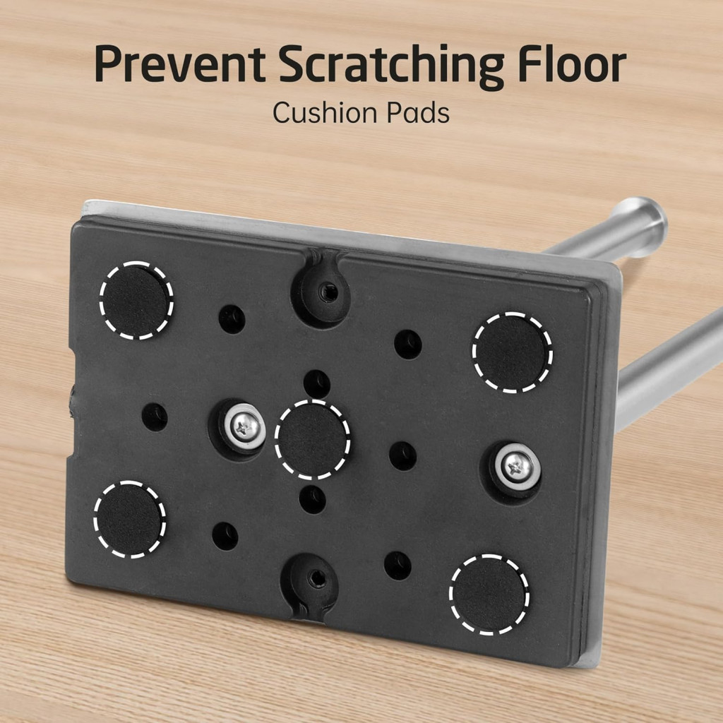 A csúszásmentes gumipárnák alatt helyezkednek el, így nem láthatók, de hatékonyan megvédik a padlót a karcolástól. A tartó bármilyen padlótípuson biztonságosan használható.