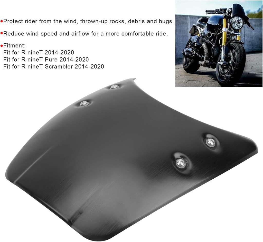 Ez a prémium minőségű motorkerékpár szélvédő kifejezetten az R nineT Pure és Scrambler 2014-2020 modellekhez tervezve. Az alumínium szélvédő fejlámpa díszítéssel nem csupán funkcionális védelmet nyújt, hanem lenyűgöző vizuális megjelenést is ad a motorkerékpárnak. A termék teljes szélvédelmet biztosít, csökkenti a szélzajt és növeli az utazás kényelmét.
