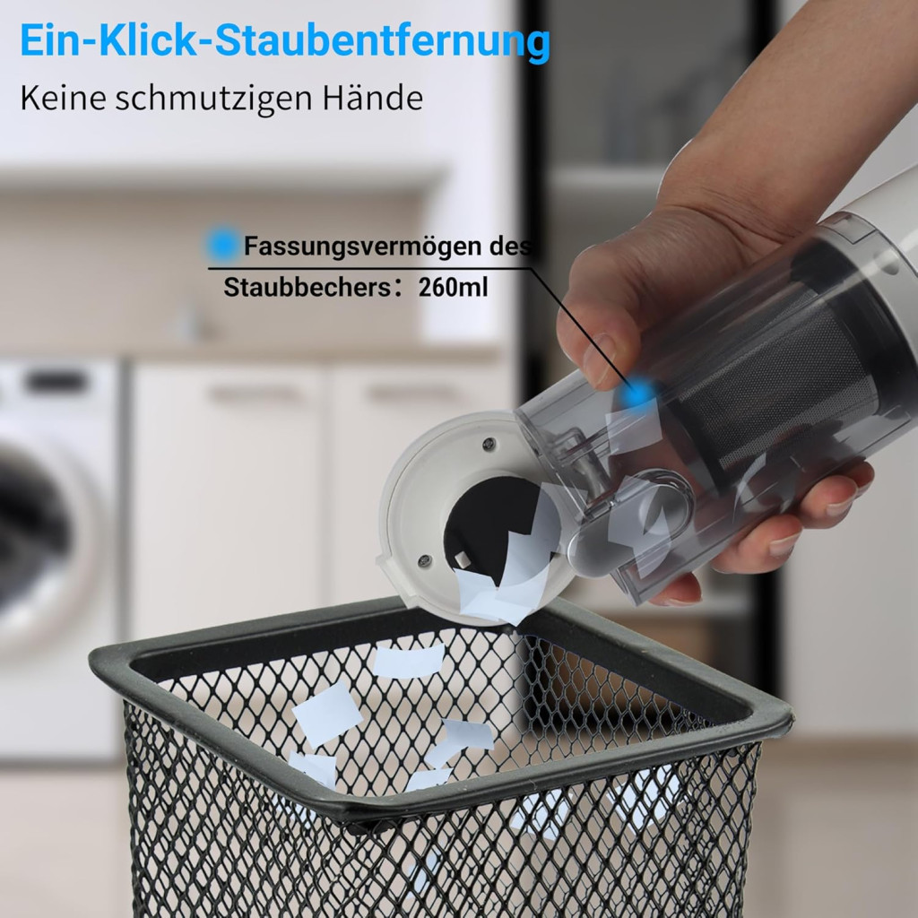 A készülék különösen hasznos lehet többszintes otthonokban, ahol nem praktikus a nagy porszívót emelgetni, vagy olyan helyzetekben, amikor gyors tisztításra van szükség vendégek érkezése előtt. A kompakt méret ellenére a 0,26 literes tartály elegendő kapacitást biztosít a legtöbb gyors takarítási feladathoz.