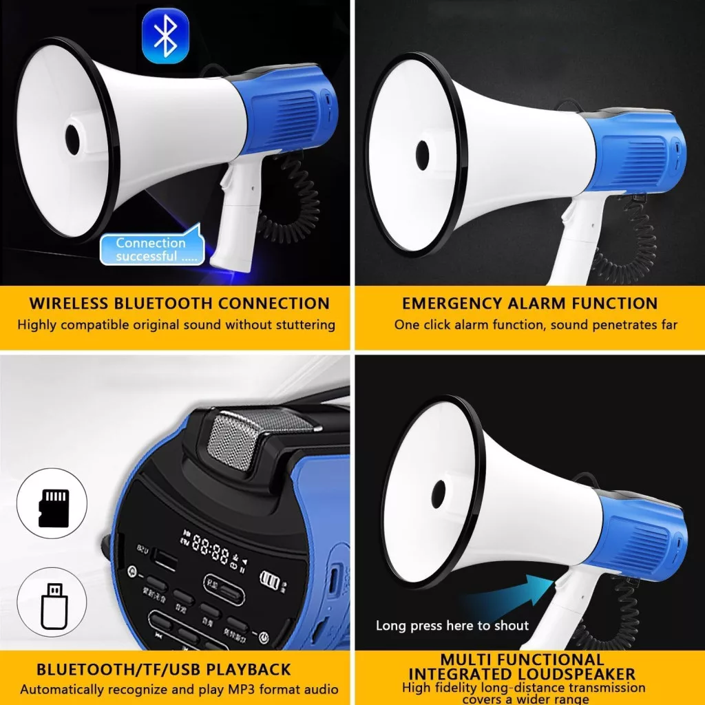 A Kensbro 120W megafon a legjobb választás azok számára, akik professzionális minőségű hangerősítésre van szükségük. Az eszköz megbízható teljesítménye, sokoldalú funkciói és robosztus felépítése biztosítja, hogy hosszú ideig szolgálja majd az Ön szükségleteit. Akár nagy rendezvényt szerveznek, kültéri tevékenységeket vezetnek, vagy vészhelyzeti kommunikációra van szükség, ez a megafon megbízható partner. A Bluetooth és MP3 lejátszási lehetőségek modern kényelmet biztosítanak, míg a szirena és felvételi funkciók további értéket adnak. Az intelligens zajcsökkentés biztosítja, hogy az üzenete mindig tisztán és érthetően érkezik meg a hallgatósághoz, függetlenül a környezeti körülményektől.