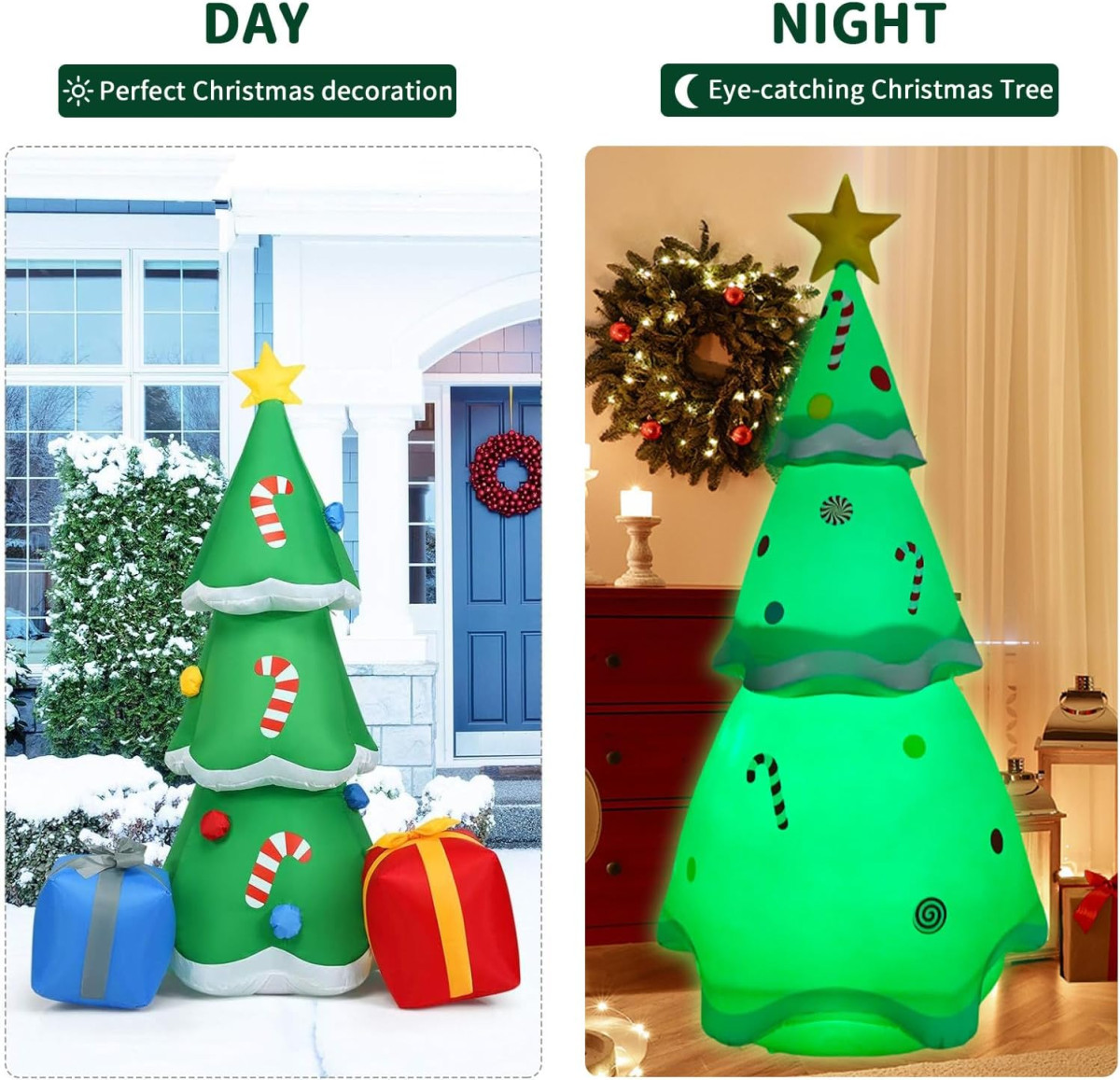 Stabil Alap: Az alap vízinjektálási nyílással és felfújási nyílással van felszerelve, amely nagyban javítja a stabilitást és megakadályozza az erős szél behatolását. Ez biztosítja, hogy a karácsonyfa biztonságosan marad a helyén.