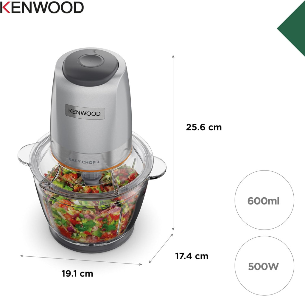 Kenwood EasyChop+ CHP62.400 SI Electric Chopper with Quadruple Blades Made of Stainless Steel, One Touch Operation, Ice Crusher, 0.6 L Working Container, Dishwasher Safe, 500 W, Black