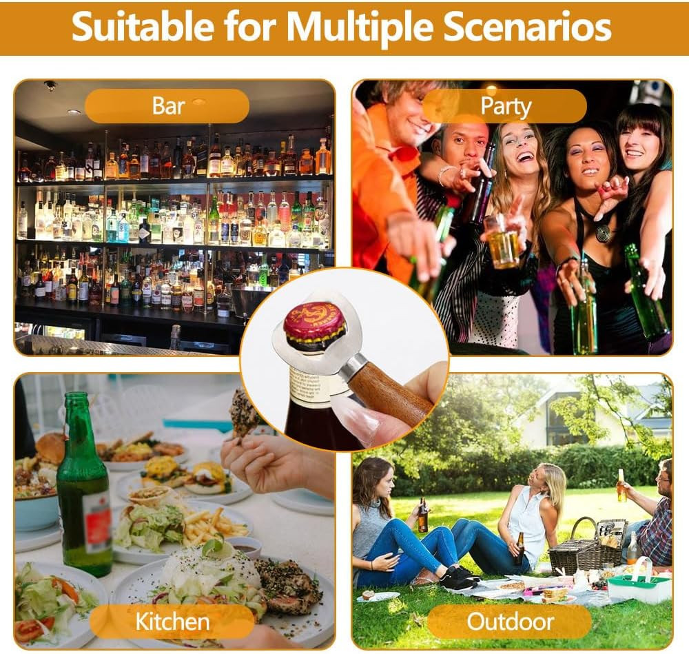 A fa sörnyitók sokoldalúan használhatók otthonban, kertben, kempingben, bárban, étteremben vagy klubban. Tökéletes választás piknikekhez, grillezéshez, családi összejövetelekhez és bármilyen szabadtéri eseményhez. Az ergonomikus kialakítás biztosítja, hogy könnyedén nyithat meg üvegeket hosszú ideig fáradság nélkül. A fa nyél természetes hőszigeteléssel rendelkezik, így a nyitó nem lesz hideg a kezedben, és nem csúszik meg nedves körülmények között sem.