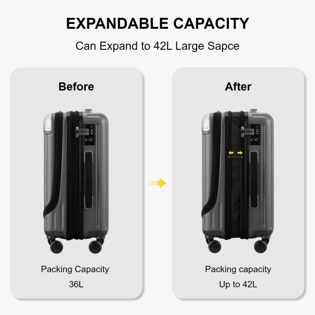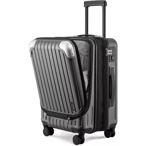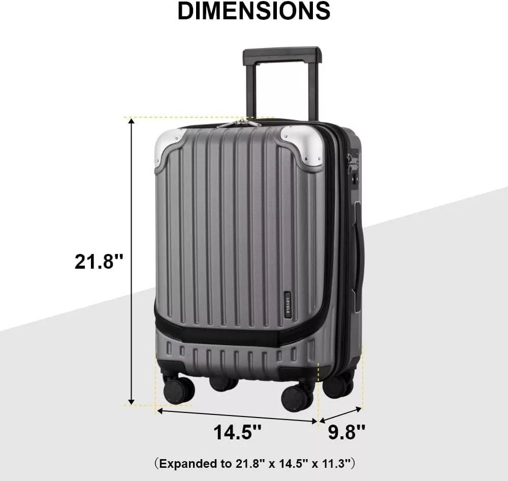 LEVEL8 55cm-es Bővíthető Kabin Bőrönd TSA Zárral, Könnyű ABS+PC Merev Utazótáska 4 Forgó Kerékkel