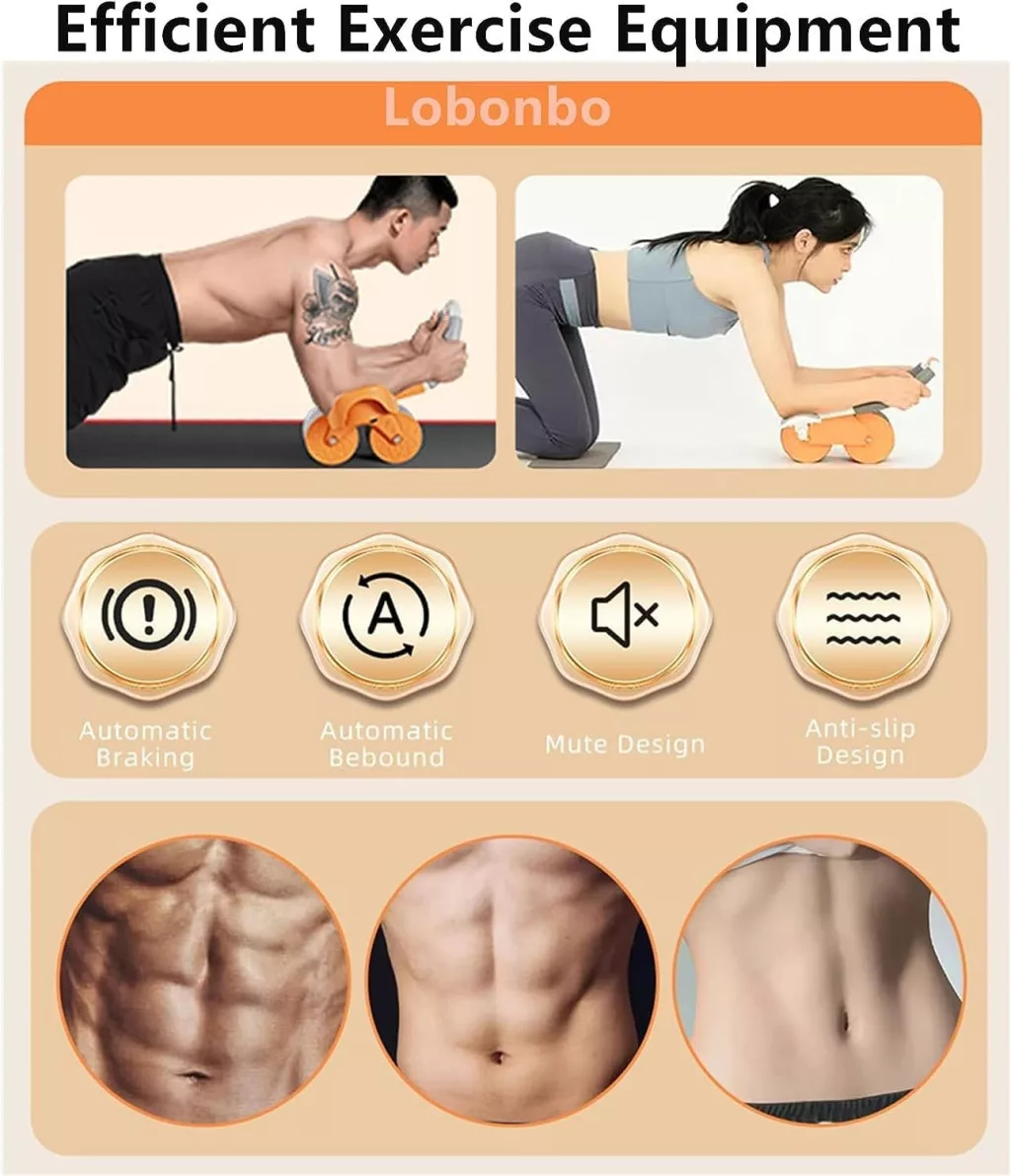 LXWINNER Automatikus Visszapattanó Hasizom Kerék, Dupla Kerekű AB Roller Edzőeszköz Térdeléssel, Narancs Színű Otthoni Fitness