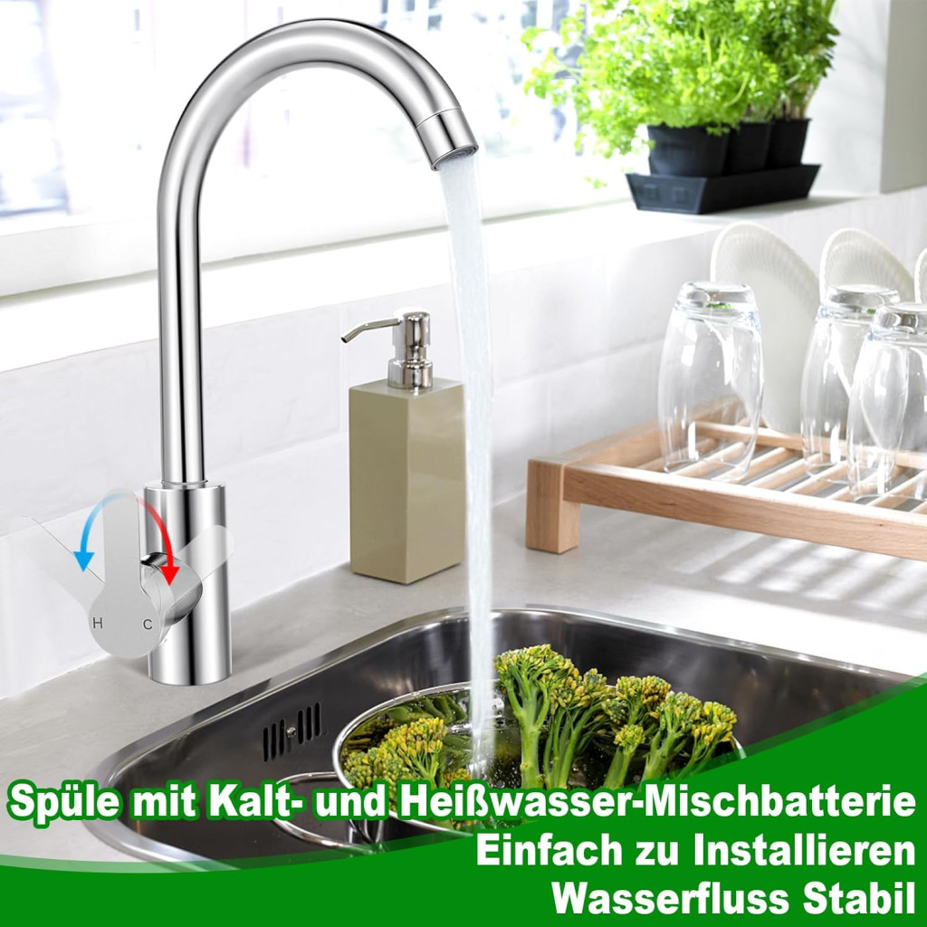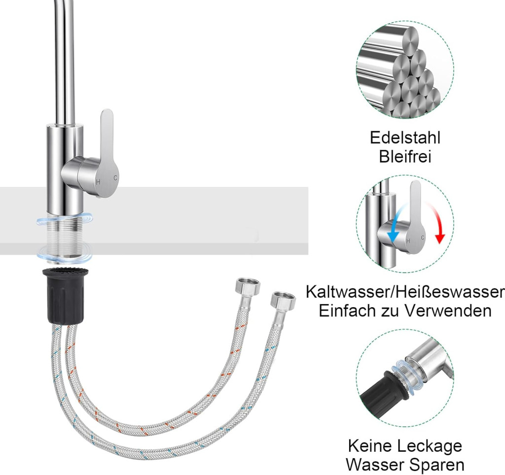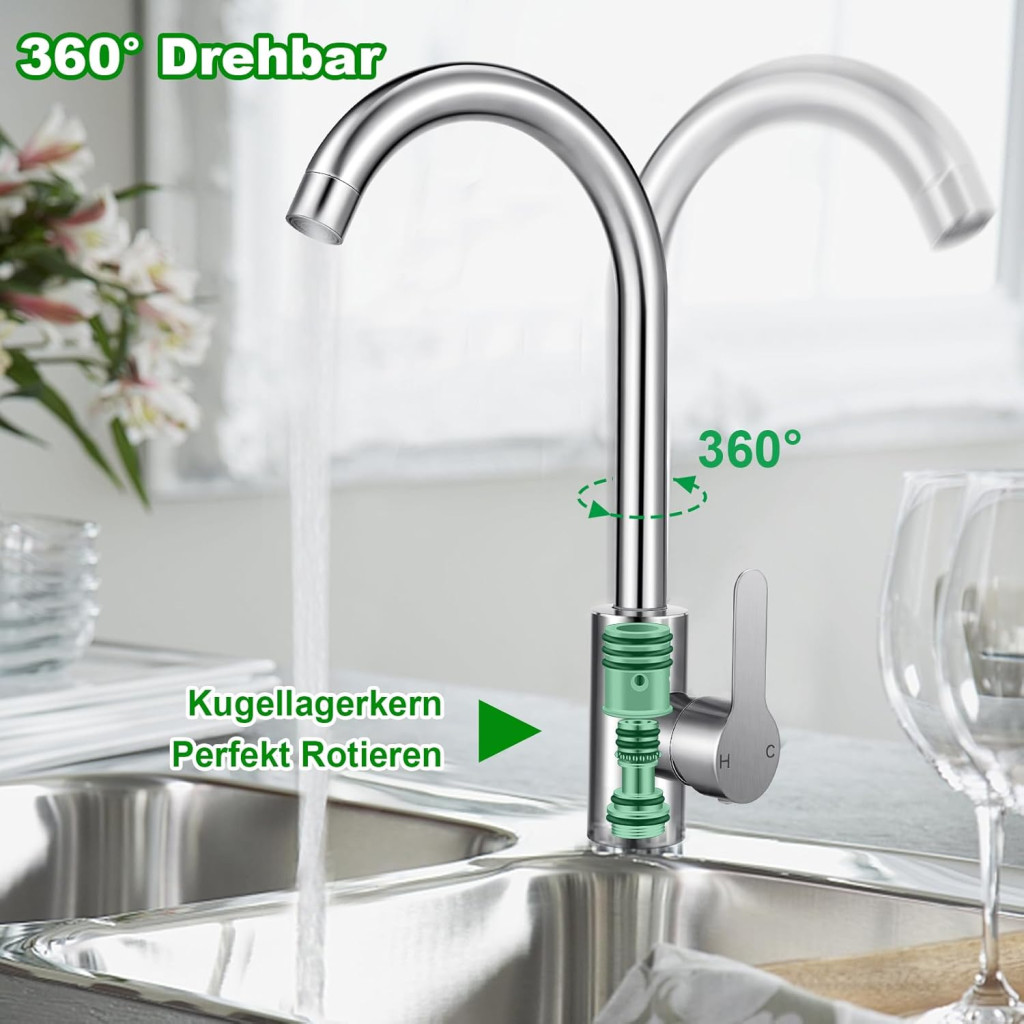 Konyhai Csaptelep, Keverőcsap Mosogatóhoz Tömlőkkel, 360° Forgatható Egykaros Konyhai Csap Termék Áttekintés