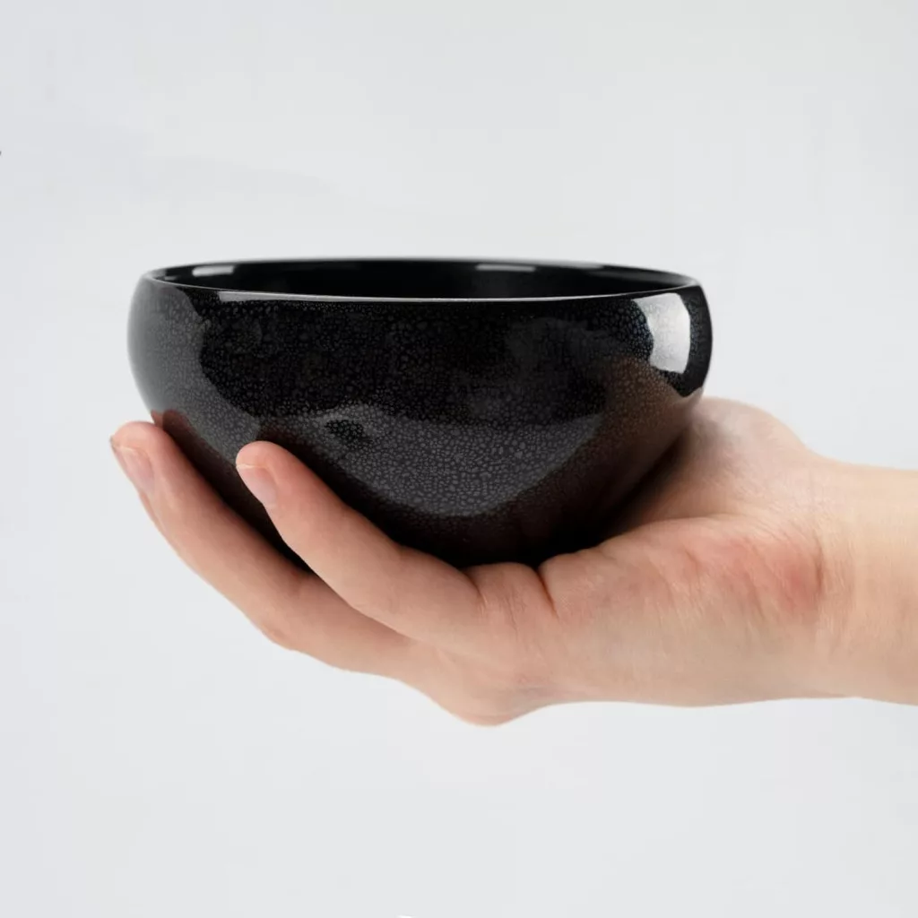 A Linkidea kerámia borotvázó tál nem csupán egy praktikus fürdőszobai kiegészítő, hanem egy stílusos dekorációs elem is. A kézzel készített porcelán garantálja, hogy minden darab egyedi és különleges. Az exkluzív fekete szín és a szabálytalan mázazás modern elegancia és klasszikus ízlés kombinációja.