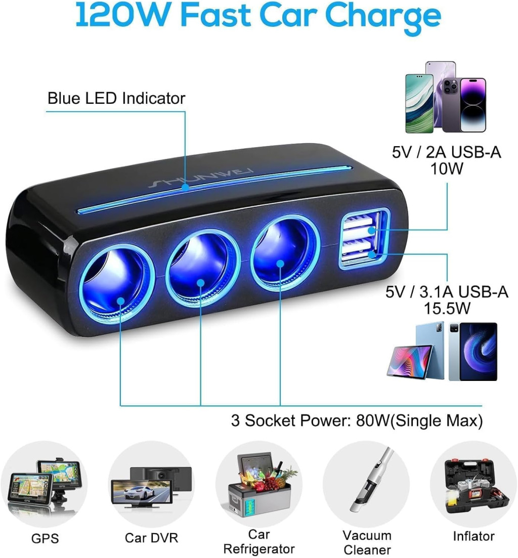 A Linkstyle 120W autós cigarettagyújtó adapter a tökéletes választás azoknak, akik több eszközt szeretnének egyszerre tölteni vagy üzemeltetni az autóban. Megbízható, biztonságos és praktikus megoldás minden autósnak.