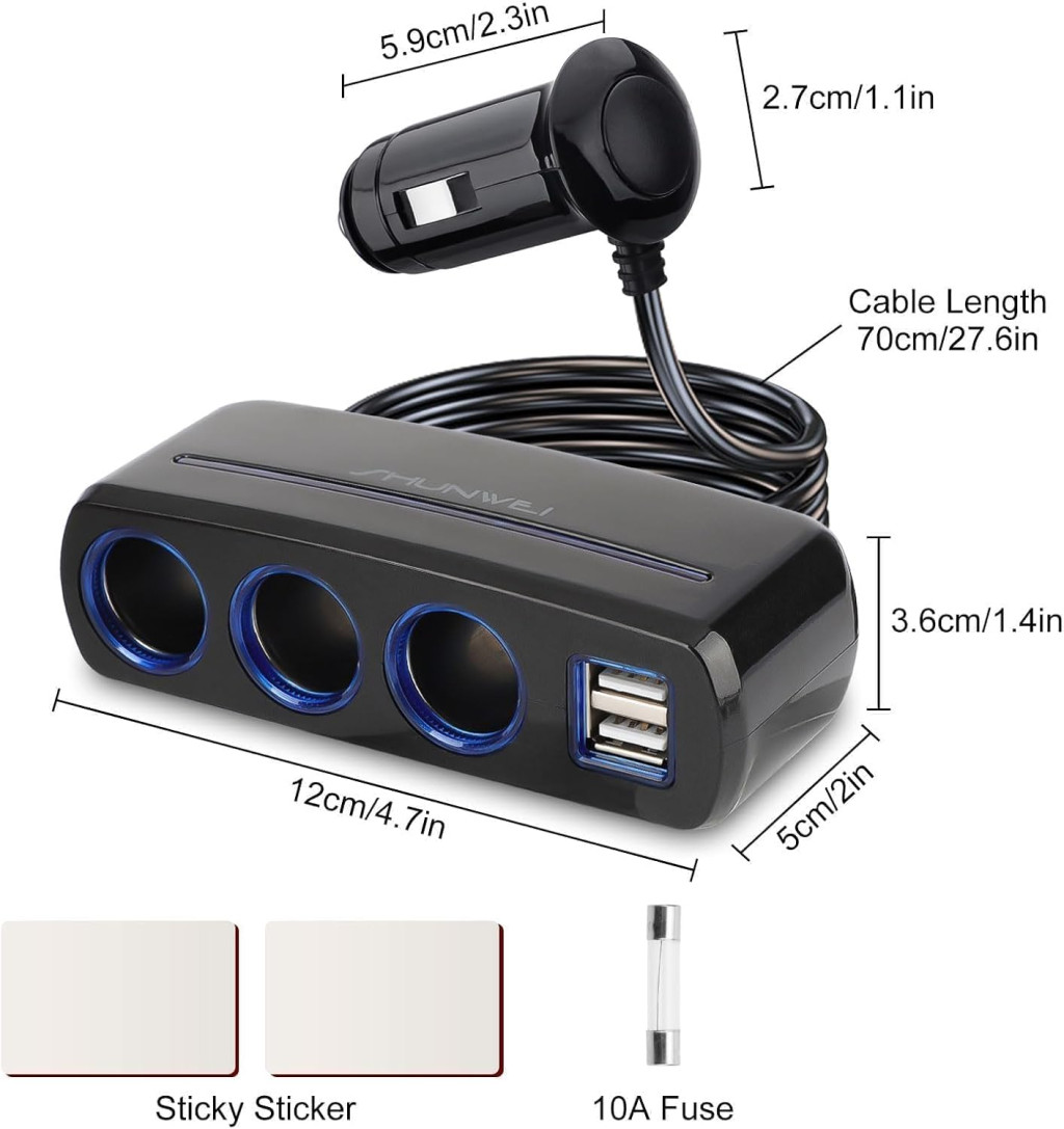 - Praktikusság: 5 csatlakozási pont (3 cigarettagyújtó + 2 USB) egy kompakt eszközben