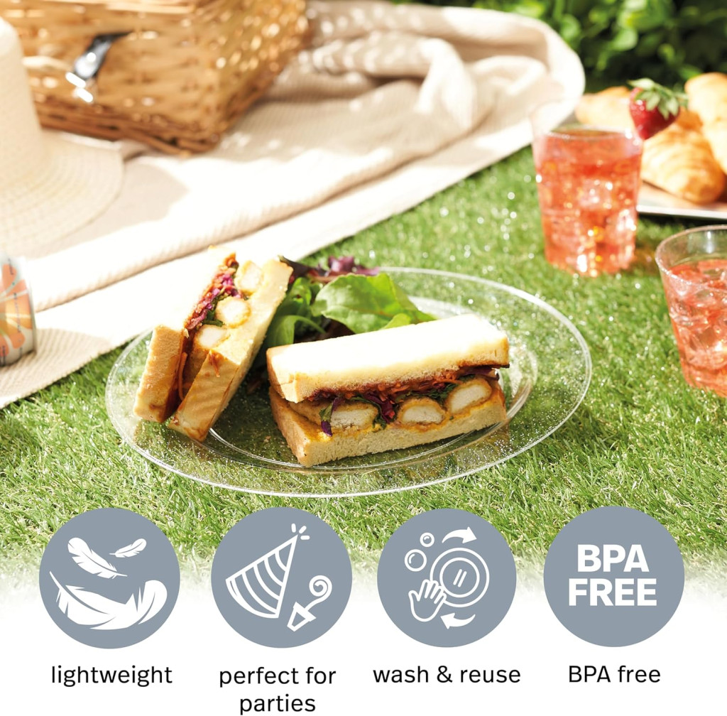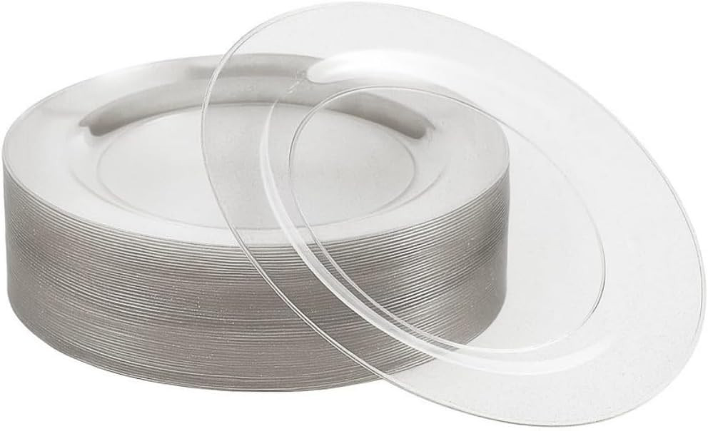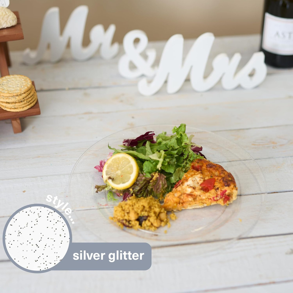 MATANA 25 db Ezüst Csillogó Műanyag Tányér 26 cm, Újrahasználható Parti Tányér