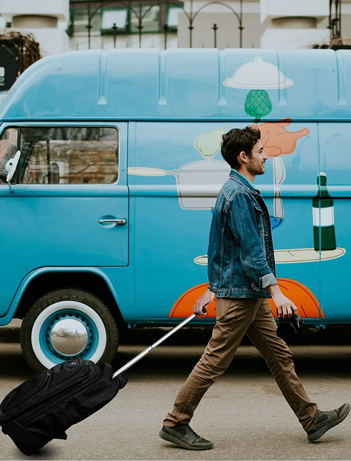 • Kerekek – csak 2 kerék, nem 4 kerék, így nem olyan stabil, mint egy teljes méretű bőrönd