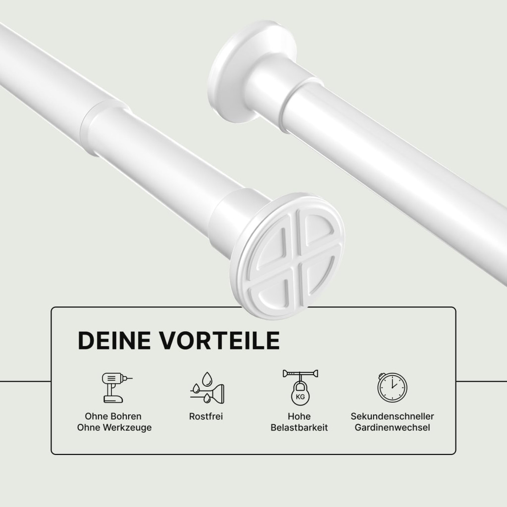 Feszítőrúd Fúrás Nélkül – Fehér, 25 mm – Teleszkópos Függöny Rúd 70-120 cm