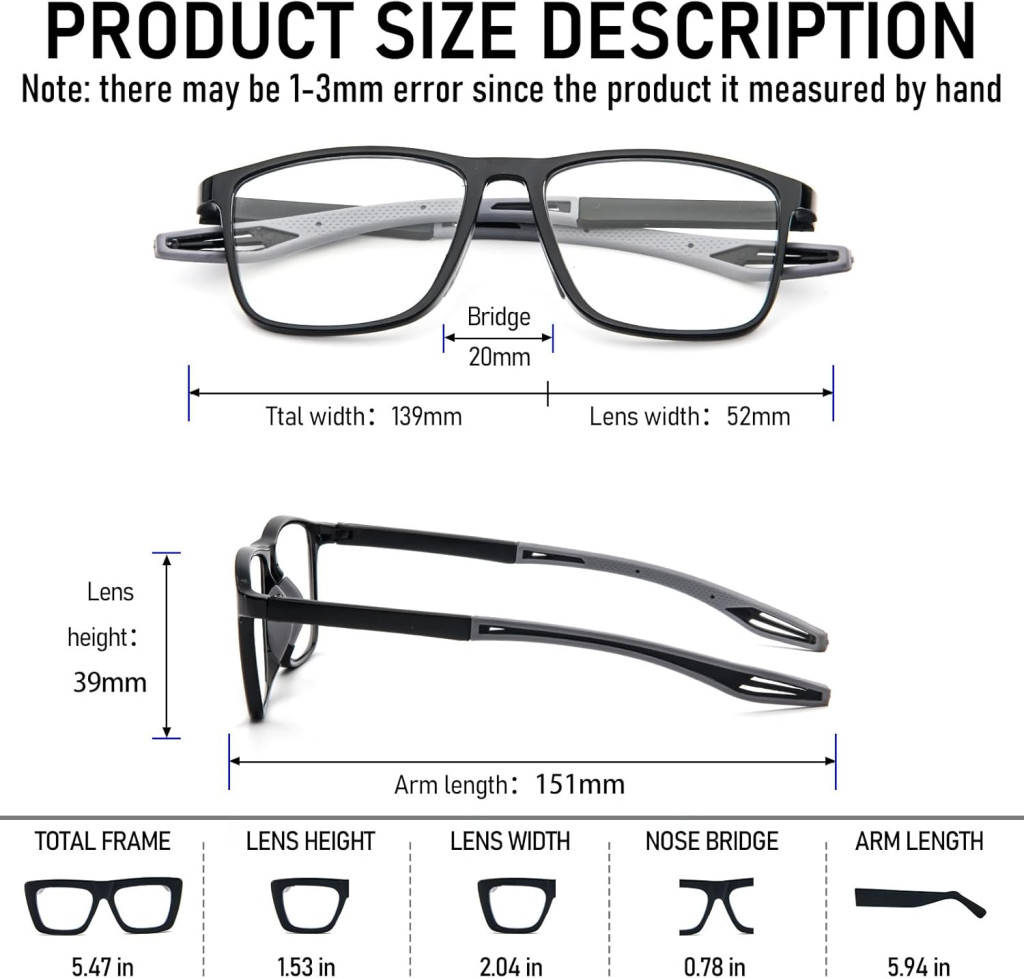 Az MMOWW olvasószemüveg +1.25-ös dioptriával rendelkezik, amely enyhe presbyopia (életkorral kapcsolatos látásproblémák) korrekciójára alkalmas. A négyzetes keret design univerzális, így férfiaknak és nőknek egyaránt megfelelő. Az összes szín variáció (szürke, kék, átlátszó) azonos specifikációval rendelkezik, így bármelyiket választhatja az adott nap vagy helyzet szerint.