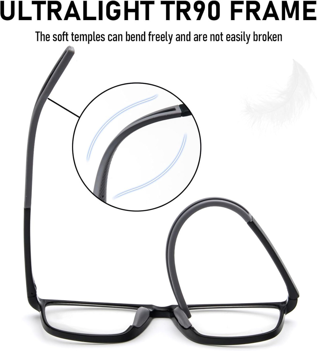 - Könnyű TR90 keret: Az ultrakönnyű anyag biztosítja, hogy hosszú viselés során sem érezni fáradtságot vagy nyomást az orron és a fülek mögött