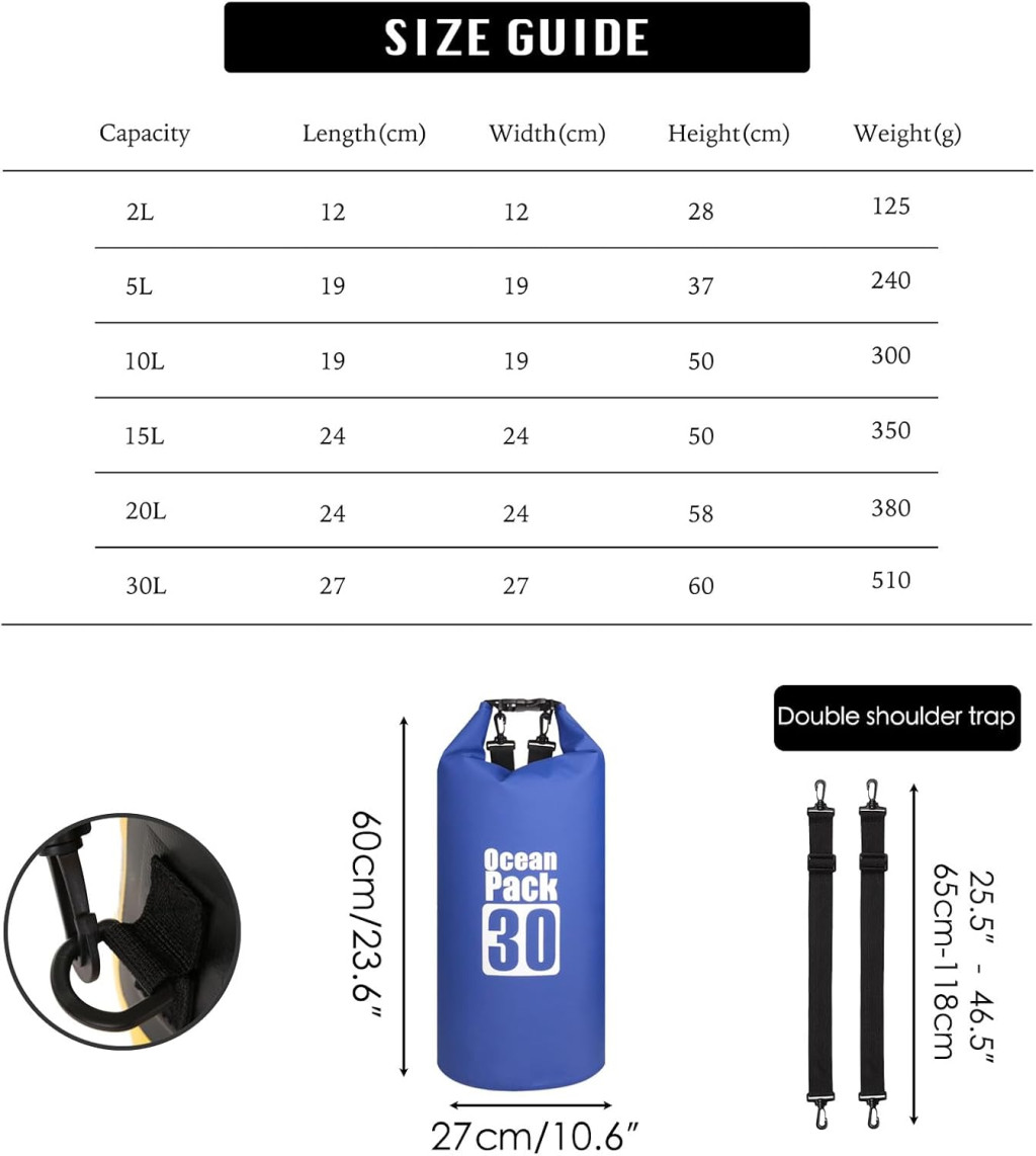 A 30 literes vízálló száraz táska a modern kalandorok és vízi sport rajongók ideális választása. Professzionális varratmentes technológiával készült, amely garantálja, hogy értékes tárgyaid és felszerelésed száraz marad még a legszélsőségesebb körülmények között is. Legyen szó rafting, kajakozás, kempingezés vagy strandolás – ez a táska megbízható társad lesz minden abban.