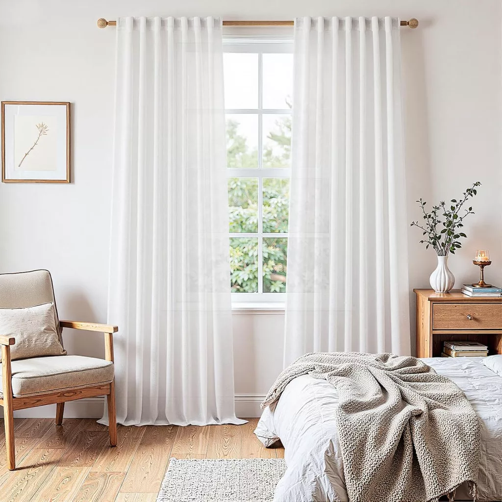 MRTREES Modern Fehér Lenvászon Függöny 240x300 cm | Nappali és Hálószoba Függöny