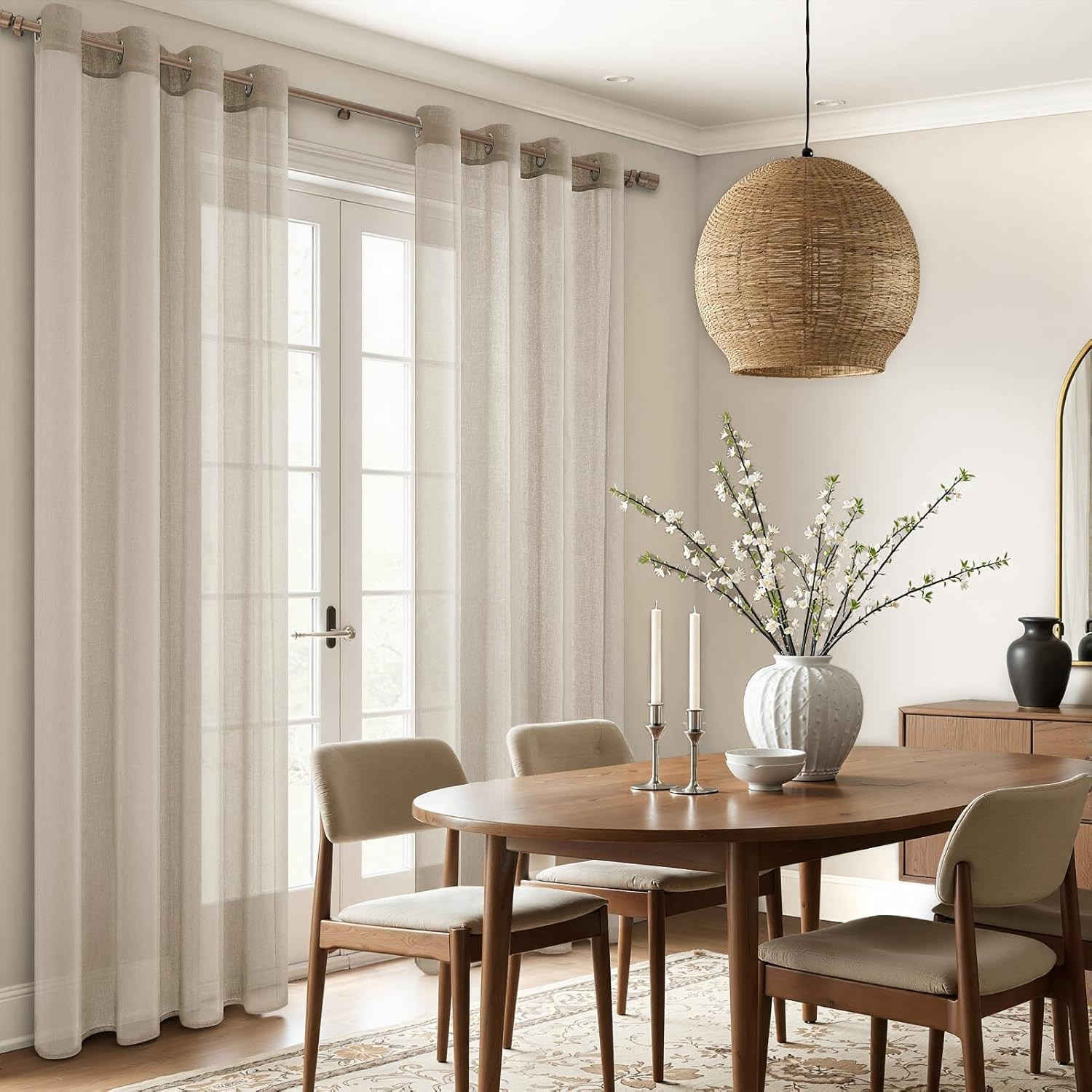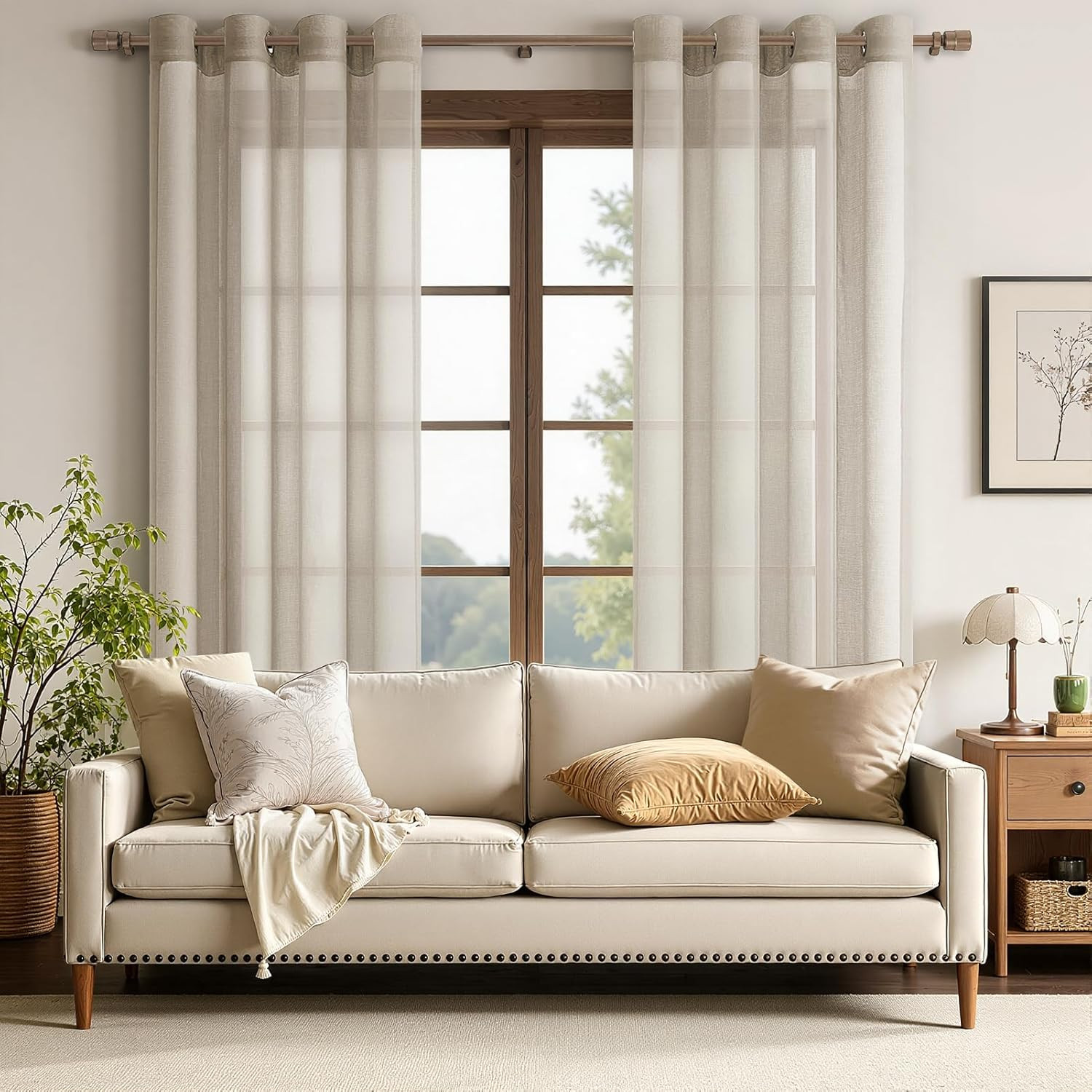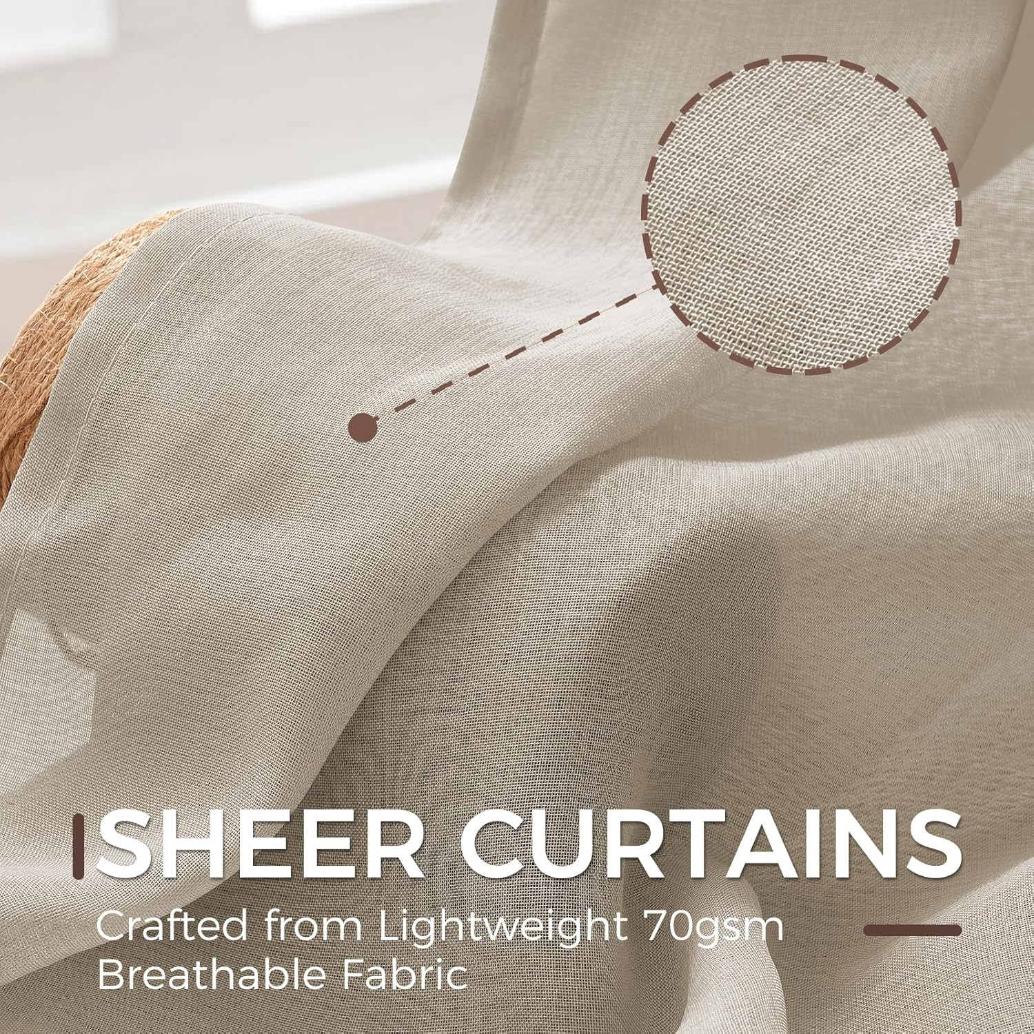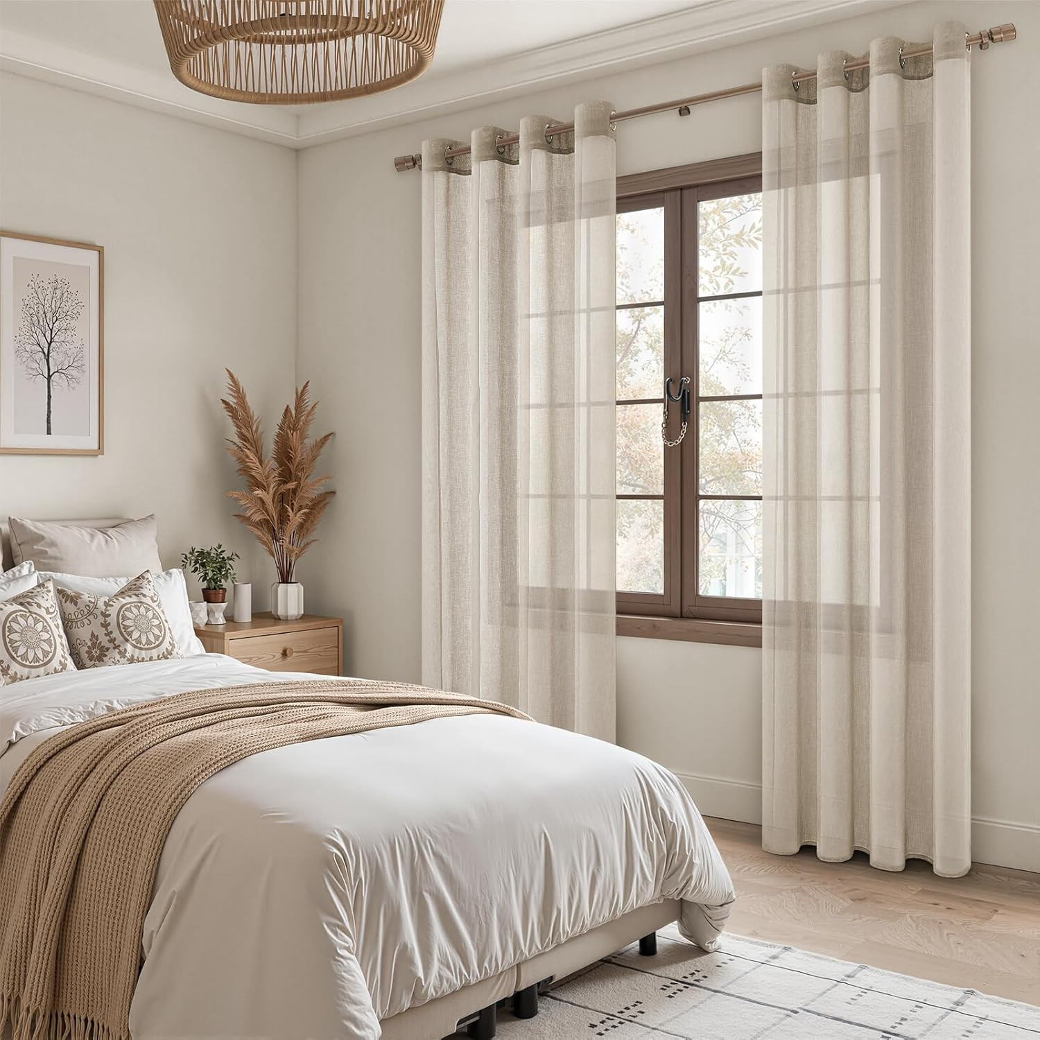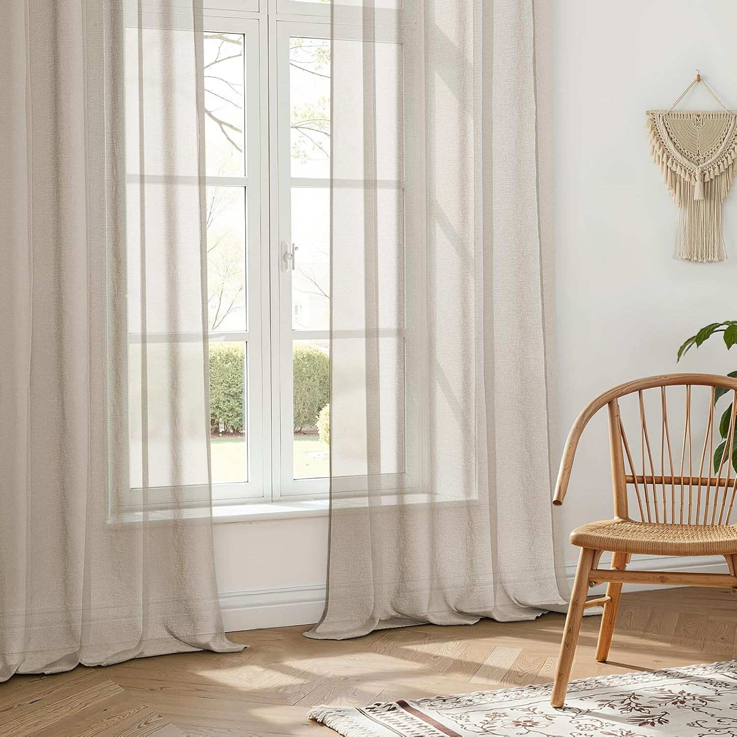 Az MRTREES félátlátszó függöny szett a modern otthon ideális választása. Ez a 2 darabos szett elegáns beige színben, lenvászon hatással készült, amely tökéletes harmóniát teremt a nappalib, hálóban vagy étkezőben. A 122 x 140 cm méretű függönyök fém szemcsékkel vannak felszerelve, amelyek könnyű felszerelést és sima csúszást biztosítanak. Az MRTREES brand filozófiája szerint ezek a függönyök nem csupán dekoratív elemek, hanem a ház lelke, amely biztosítja a magánéletet, a megfelelő fénybejutást és a természetes légáramlást.
