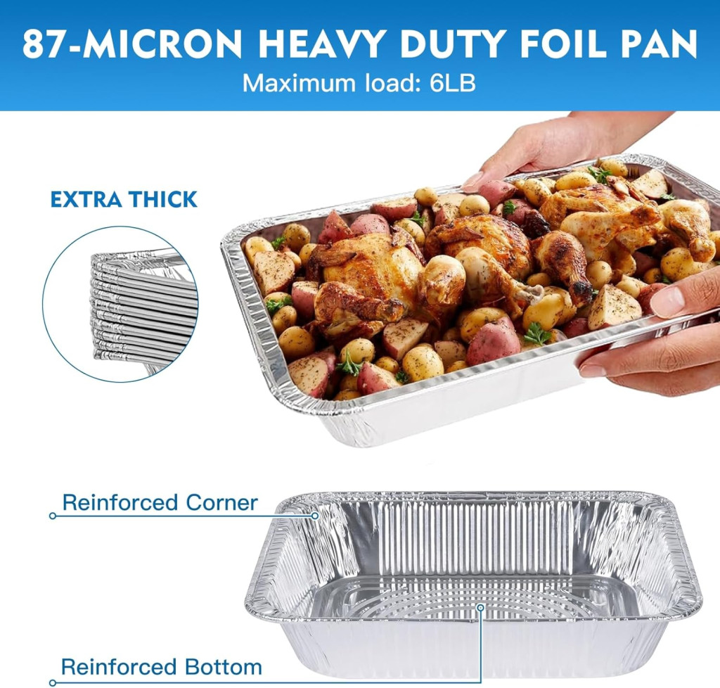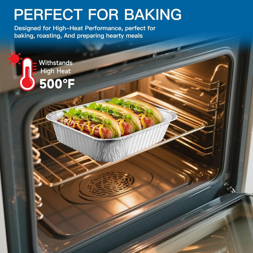 Az alumínium sütőtálcák sütőben, fagyasztóban és grillezéshez egyaránt alkalmasak. Az extra vastag alumínium szerkezet biztosítja, hogy a tálcák nem deformálódnak magas hőmérsékleten. Mosogatógépben biztonságosan moshatók, így a tisztítás gyors és könnyű. A tálcák nem tapadnak össze, ha egymásra rakod őket, így kompakt tárolás lehetséges.