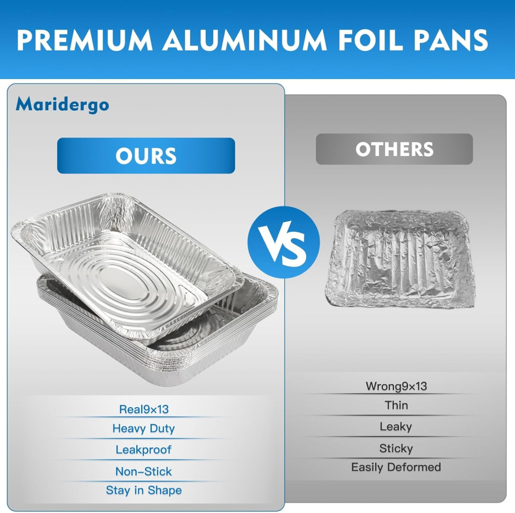A Maridergo alumínium sütőtálca készlet kiváló minőséget és megbízhatóságot nyújt versenyképes áron. Az extra vastag alumínium és az erősített bordázott falak garantálják, hogy a tálcák hosszú ideig tartanak és nem deformálódnak. A 10 darabos csomag ideális nagyobb rendezvényekhez, családi összejövetelekhez vagy készletezéshez. Az egymásra rakható kialakítás helytakarékos tárolást tesz lehetővé, míg a mosogatógépben való moshatóság gyors és könnyű tisztítást biztosít.