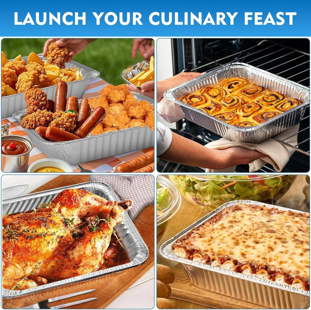 Ez a sokoldalú alumínium sütőtálca készlet számos alkalmazási lehetőséget kínál. Tökéletes választás születésnapi bulikhoz, családi összejövetelekhez, Karácsonyhoz és Húsvéthoz. Használhatod kenyér, quiche, lasagna és sütemények sütéséhez, valamint friss gyümölcsök és zöldségek tárolásához. A mély kialakítás lehetővé teszi a nagyobb adagok kezelését, míg az alumínium anyag biztosítja az egyenletes hőeloszlást a sütéskor.