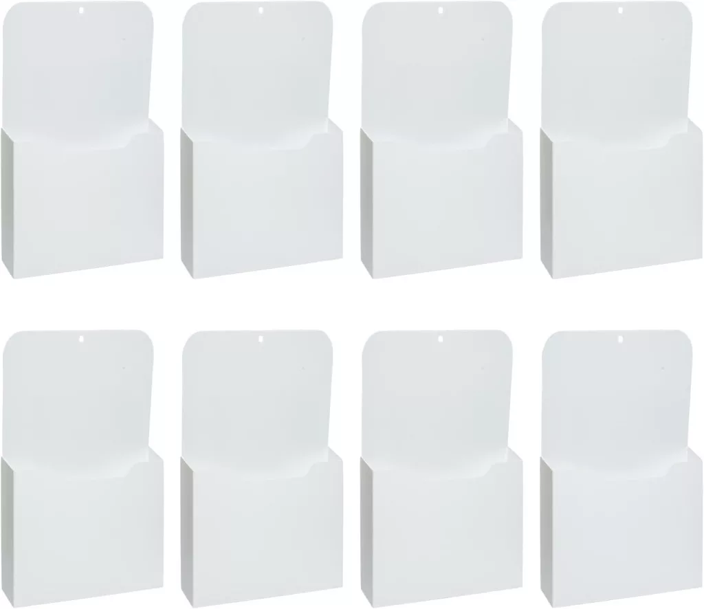 Ez a 8 darabos mágneses aktatartó szett a tökéletes megoldás az irodai és otthoni szervezéshez. Erős mágnesekkel felszerelt, fehér színű tárolódobozok, amelyek A4 méretű dokumentumok, papírok és egyéb tárgyak tárolására alkalmasak. A készlet minden egyes darabja vízálló, tartós PP anyagból készült, amely hosszú élettartamot garantál. Ideális megoldás az asztal, hűtőszekrény, whiteboard vagy fém szekrény mellé.