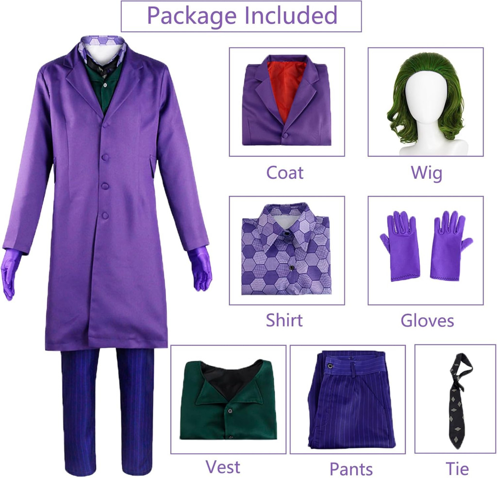 Mrsclaus Bohóc Jelmez Férfi 8 Részes Lila Kosztüm Kabáttal Halloweenre