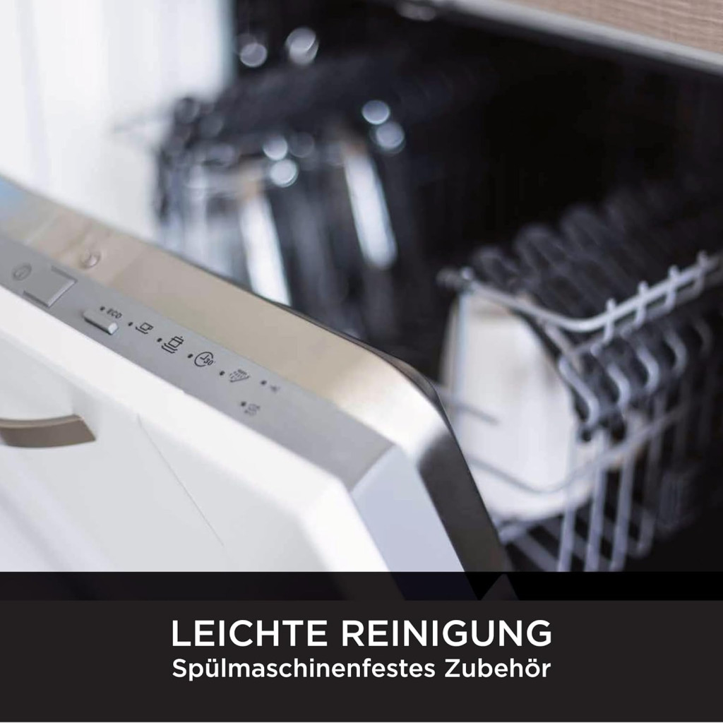 Tárolás: Az 1,5 méteres kábel felcsévélhető, és az összes kiegészítő kompakt helyen tárolható. Ez ideális megoldás kisebb konyhákhoz.