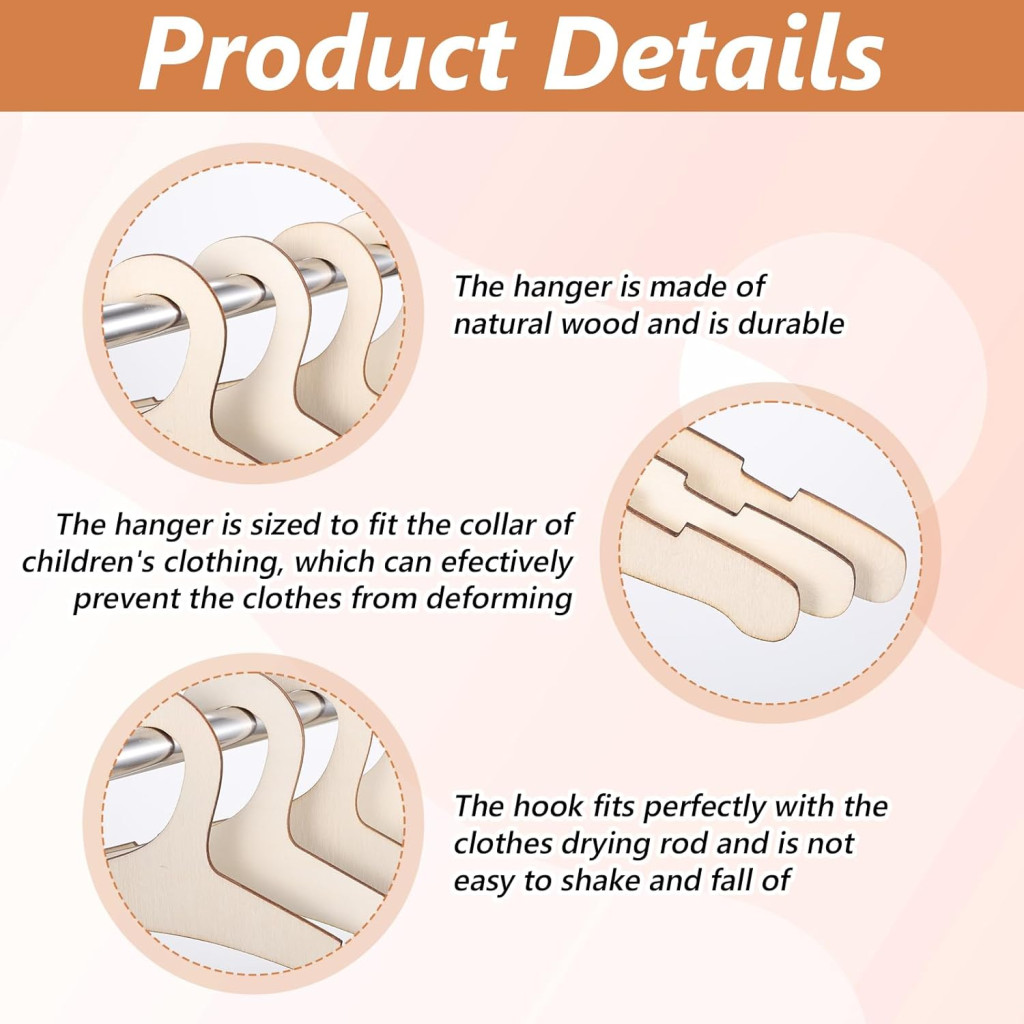 Nogeqi 10 db gyerek fa ruhaakasztó, csúszásmentes, baba ruhákhoz, tartós