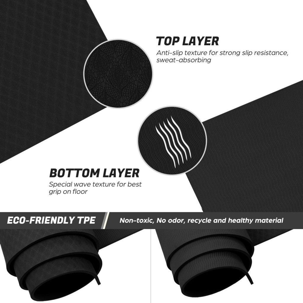 A szőnyeg csúszásgátló alsó rétege biztosítja, hogy minden felületen stabilan a helyén maradjon, így nem kell aggódnod a nem kívánt elmozdulások miatt intenzív gyakorlatok során sem. A TPE anyag továbbá kiváló hőszigetelést biztosít a hideg padlófelületeken, így télen is kényelmesen végezheted gyakorlataidat.