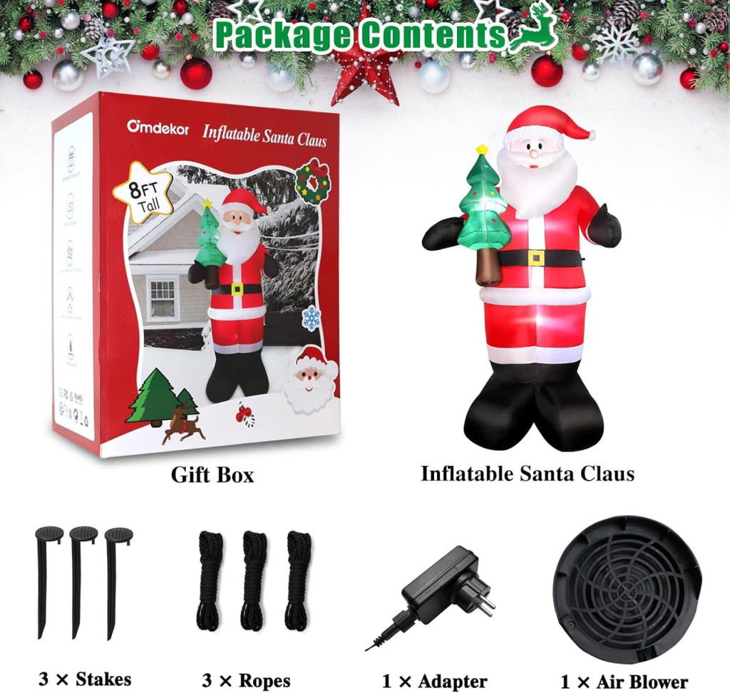 Ez a 245 cm magas felfújható Mikulás figura a piacon az egyik legjobb választás azoknak, akik professzionális minőségű, hosszú élettartamú karácsonyi dekorációt keresnek. Az Omdekor márkától származó termék garantálja a kiváló feldolgozást és a megbízható működést.