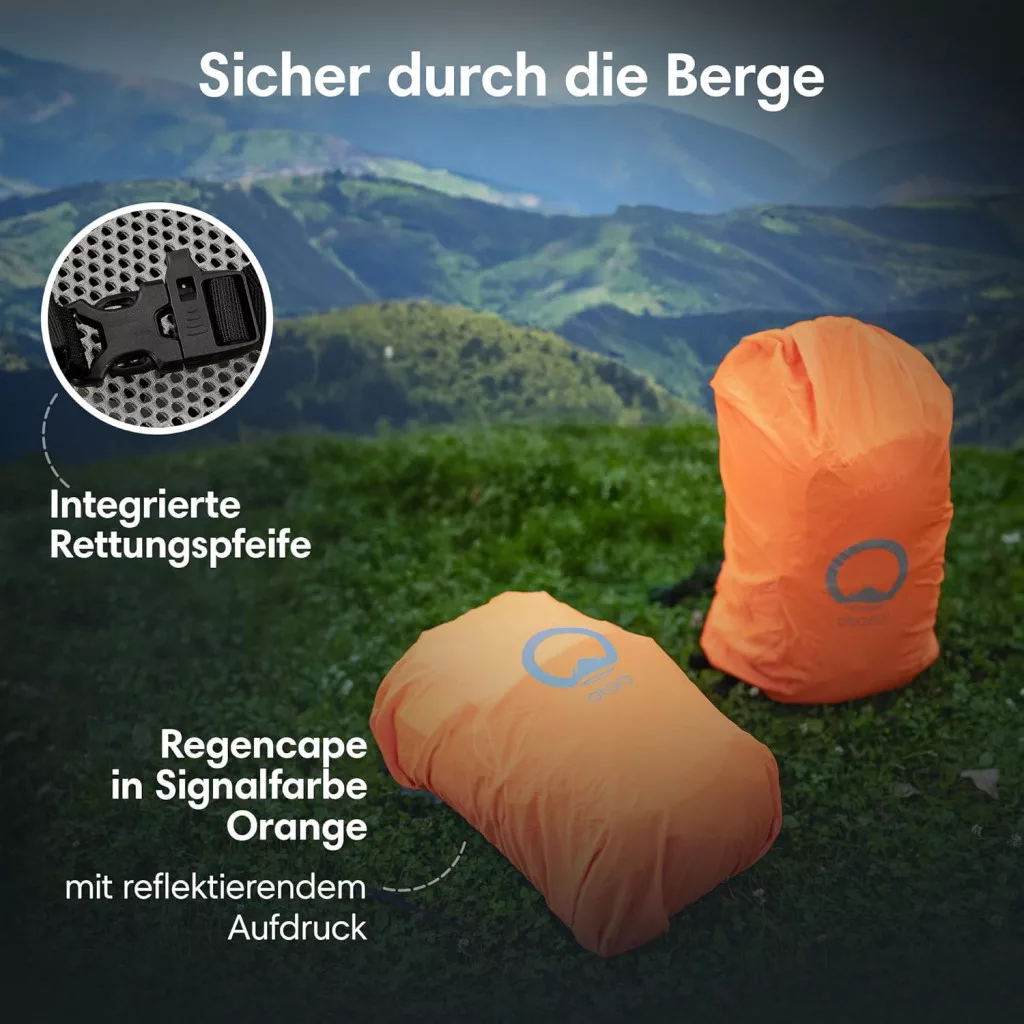 - Jól látható esővédő borítás: A hátizsákhoz tartozó színes, vízálló esővédő nem csak megvédi a felszerelésedet, de növeli a láthatóságodat is esős időben, fokozva a biztonságodat.
