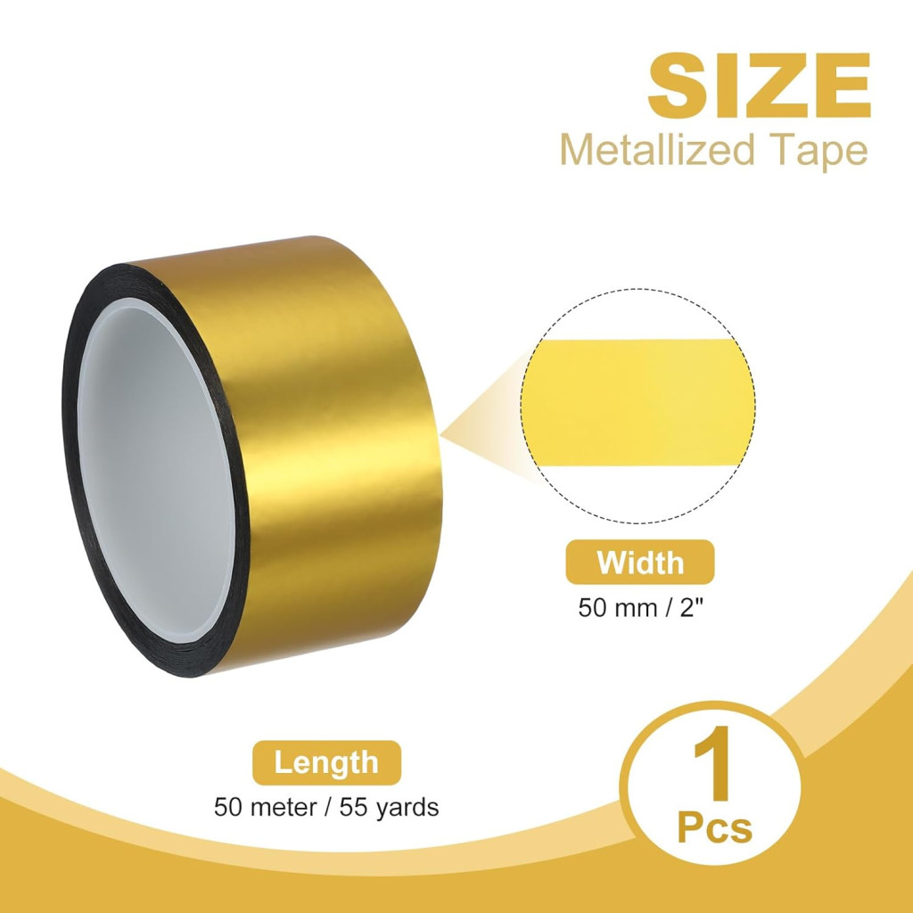 PATIKIL 50 mm x 50 m Öntapadós Fém Szalag Matt Arany - Dekoratív Csík