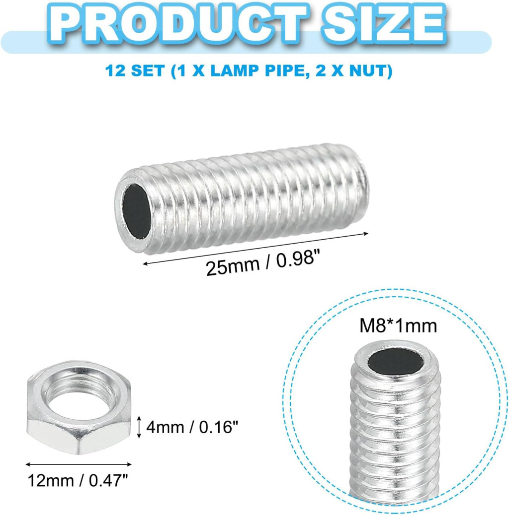A PATIKIL M8 menetes lámpacsövek szettje professzionális minőségű alkatrészekből áll, amelyek ideálisak DIY világítási projektekhez, felújításokhoz és ipari alkalmazásokhoz. Ez a 12 darabos készlet minden szükséges komponenst tartalmaz a biztonságos és stabil lámpaszereléshez. A fehér cinkbevonattal ellátott acél csövek és anyák garantálják a hosszú élettartamot és a korróziómentes működést még nedves vagy kültéri környezetben is.
