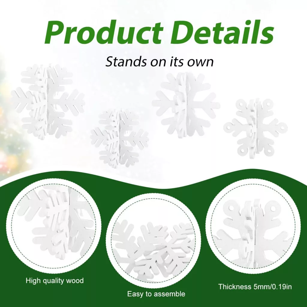 - Stabil kialakítás: Minden hópehely biztonságosan áll az asztalon, klasszikus hópehely forma