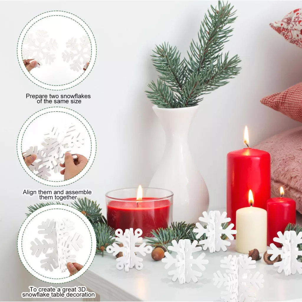 A termék ideális választás karácsonyi partikhoz, téli eseményekhez, családi összejövetelekhez és még sok más alkalomhoz. Minden hópehely stabil alappal rendelkezik, amely biztosítja, hogy az asztalon biztonságosan megmarad, anélkül, hogy egymásra borulnának.