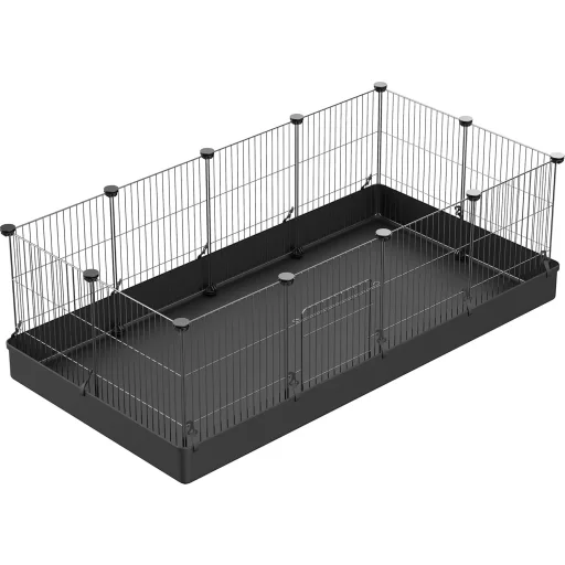 PILIN Kisállat Kifutó Kapuval - 12 Részes Hörcsög, Nyúl, Tengerimalac Ketrec Kivehető Vízálló Alappal, 43x32 cm, Bel- és Kültéri Használatra