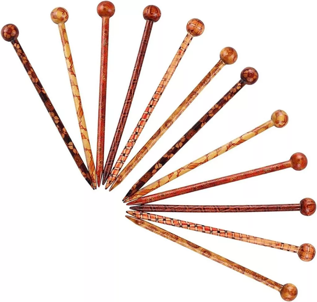 12 darabos fa hajcsatok készlet kínai stílusban - Virágmintás hajkapcsa nőknek Klasszikus Kínai Fa Hajcsatok - 12 Darabos Készlet