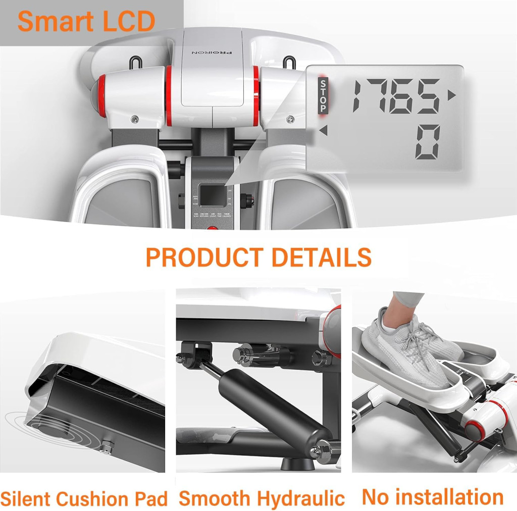 A PROIRON Fitness Stepper egy kompakt, sokoldalú edzőgép, amely tökéletesen alkalmas otthoni, irodai vagy szabadtéri használatra. Ez a mini lépcsőzőgép professzionális minőségű anyagokból készült, és kifejezetten arra tervezték, hogy teljes testedzést biztosítson, különösen a lábak, csípő, fenék és felső test izmainak erősítésére. Az integrált LED kijelző nyomon követi az edzés során elégetett kalóriákat, az edzési időt és a lépések számát, így segít elkerülni a túledzést és az izomfájdalmat.