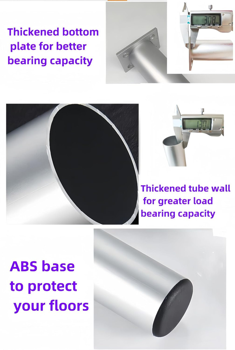 Az erősített csőfal és vastagabb alaplemez garantálja a maximális terhelhetőséget és a deformáció elleni védelmet. Az ABS talp rendkívül kopásálló, és megvédi a padlót a karcolásoktól és sérülésektől. Ideális TV szekrényekhez, fürdőszobai bútorokhoz, konyhaszekrényekhez, éjjeliszekrényekhez, étkezőasztalokhoz, kávézóasztalokhoz és DIY projektek számára.