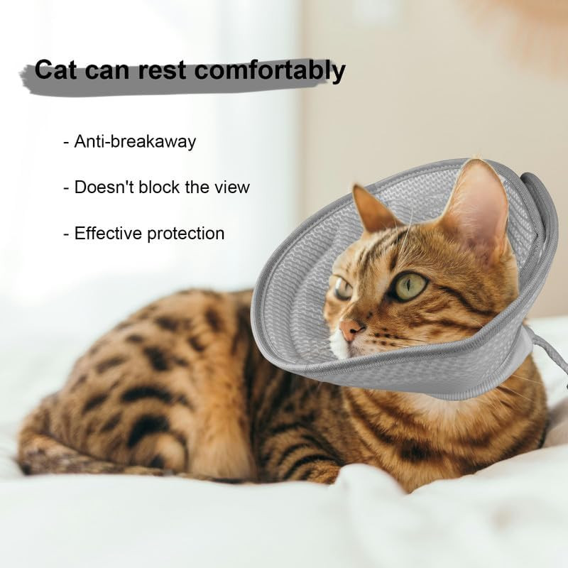 PetSmiler Macska Védőgallér - Puha Összehajtható Tölcsér, Könnyű Posztoperatív Gyógyulási Gallér Sérülések Után, Szürke XL