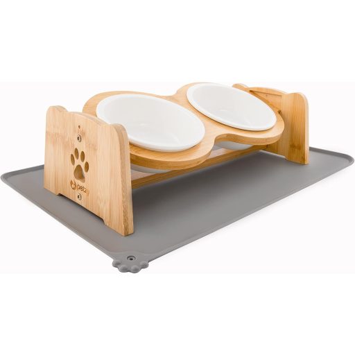 Petzy állítható magasságú kerámia etetőtál kutyáknak és macskáknak, bambusz állvánnyal, 350ml