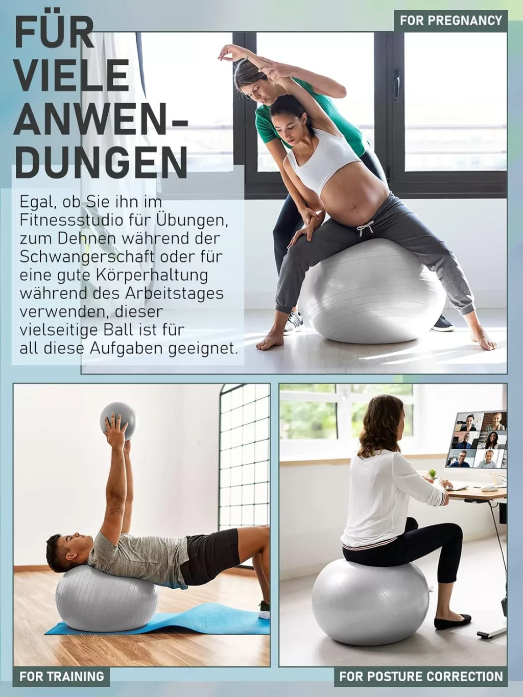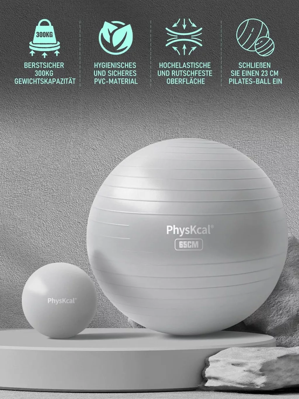 PhysKcal 65cm szürke torna labda + 23cm pilates labda szett, anti-burst, csúszásmentes egyensúly labda