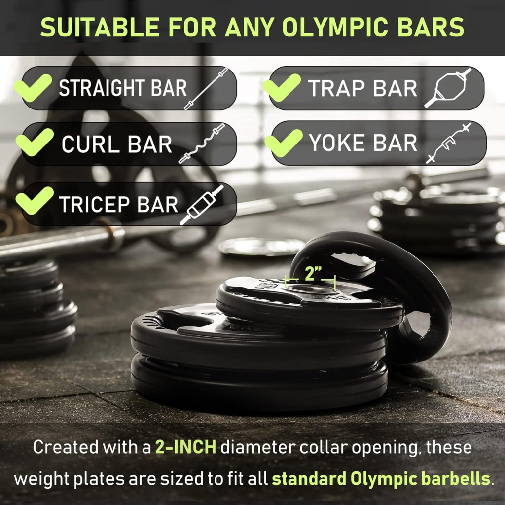 Ezek a súlylemezek ideálisak minden típusú erőedzéshez és testépítéshez. Tökéletesen működnek olimpiai egyenes rúdakkal, valamint speciális rúdakkal, mint például a görbült rúd, tricepsz rúd, csapdavas rúd és biztonsági guggolás rúd. Akár otthoni edzőteremben, akár professzionális fitnesz stúdióban használja őket, ezek a lemezek megbízható teljesítményt nyújtanak. Az ujjfogantyúk lehetővé teszik az egykezes edzéseket is, így fejlesztheti az ujjak és a kéz erősségét.
