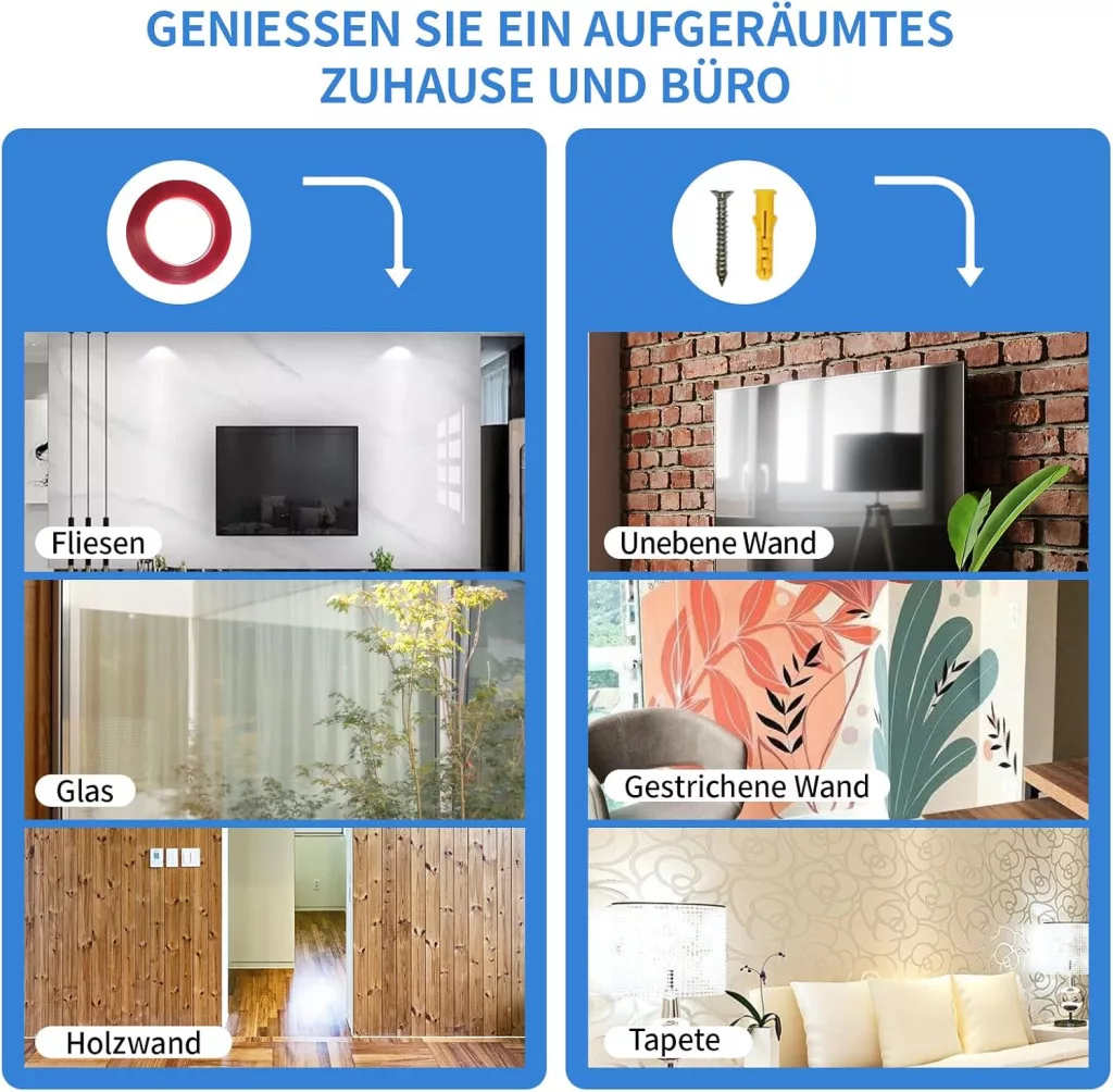 • Sokoldalú rögzítés: Erős öntapadós szalaggal és csavaros rögzítési lehetőséggel különböző felületekhez.