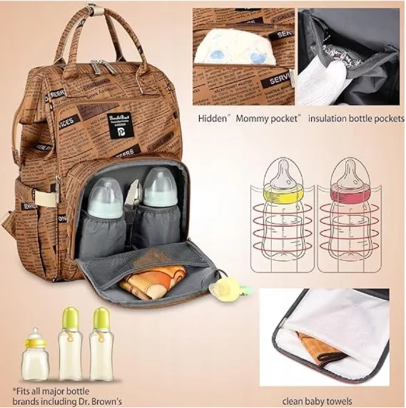 - Különböző méretű cumisüvegekkel: A szigetelt oldalsó zsebek különböző méretű cumisüvegek tárolására alkalmasak, melegen vagy hűvösen tartva a folyadékot.
