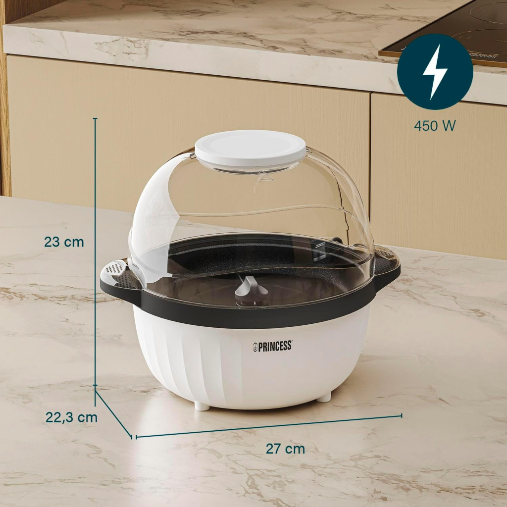 Princess 4,5L Popcorn Készülék Keverőrudas Vaj Olvasztóval és Átlátszó Fedéllel