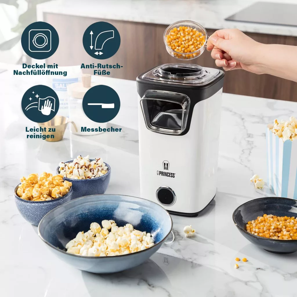 Legyen szó filmezésről, buliról vagy egyszerűen csak egy egészséges nassolnivalóról, a Princess Hot Air Popcorn Maker mindig megbízható választás. Készítsen friss, ízletes popcornt mindössze 3 perc alatt, és élvezze a család és barátok mosolyát!